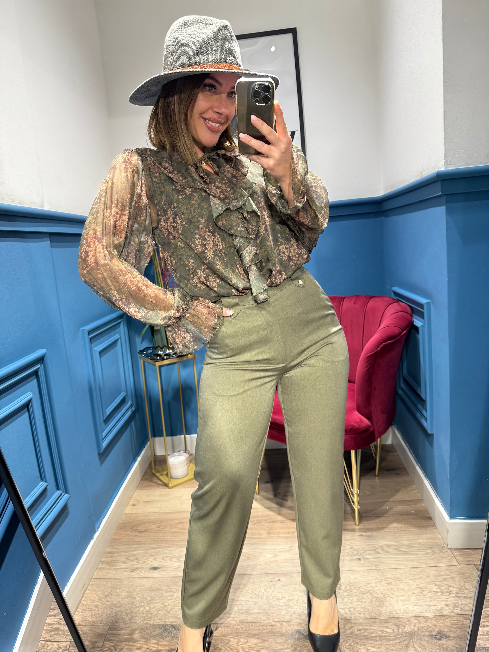 Blusa in Georgette con scollo a V e collo coreano con laccetto. Tg unica