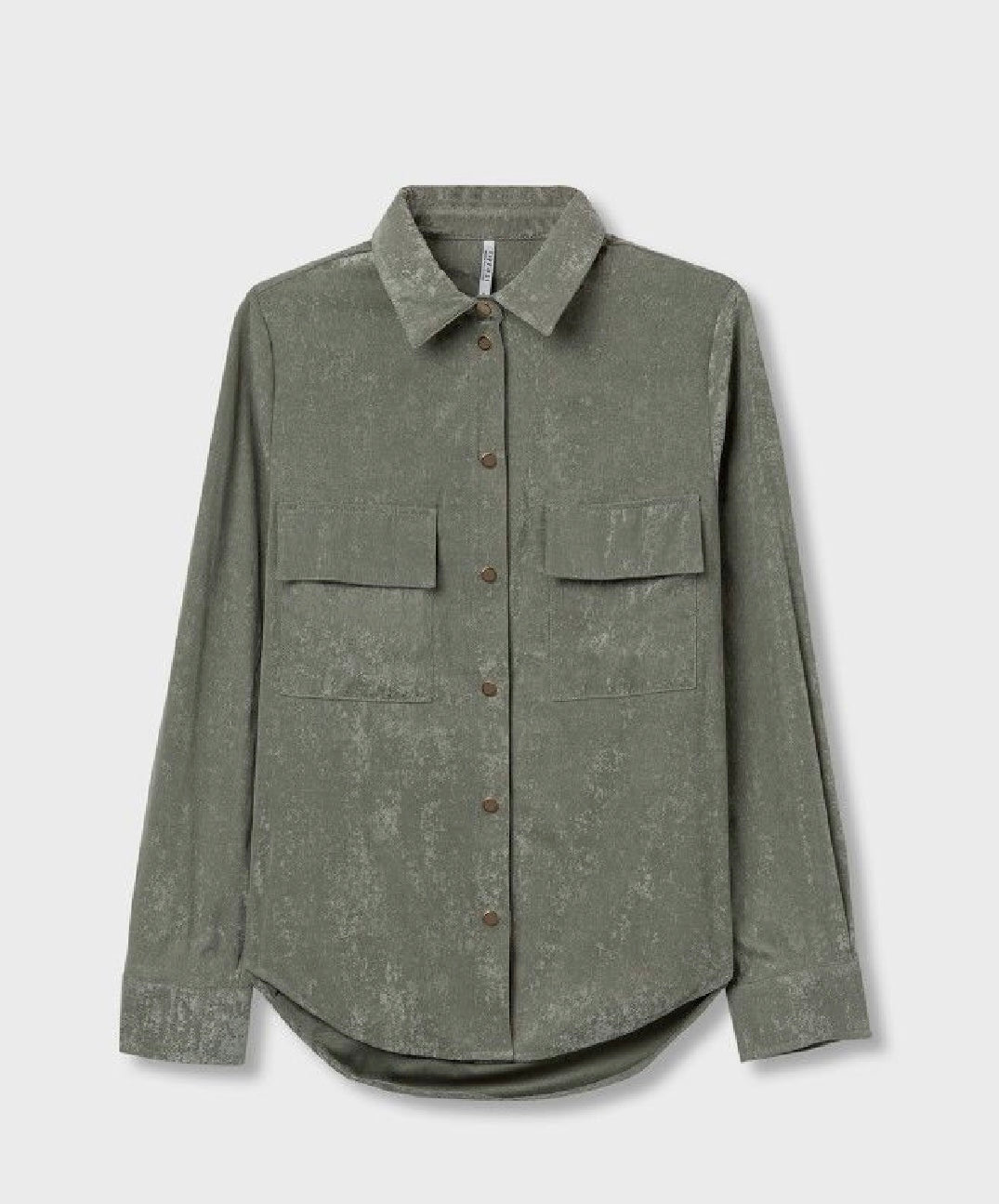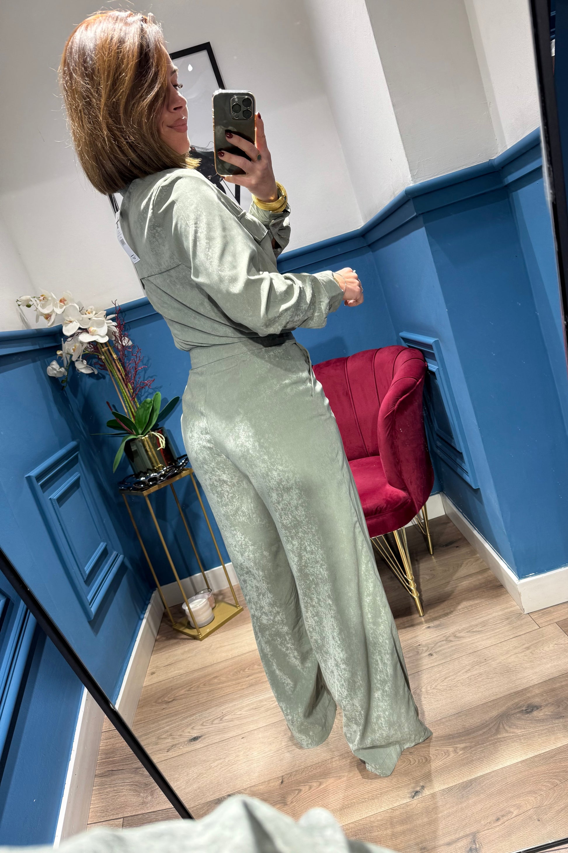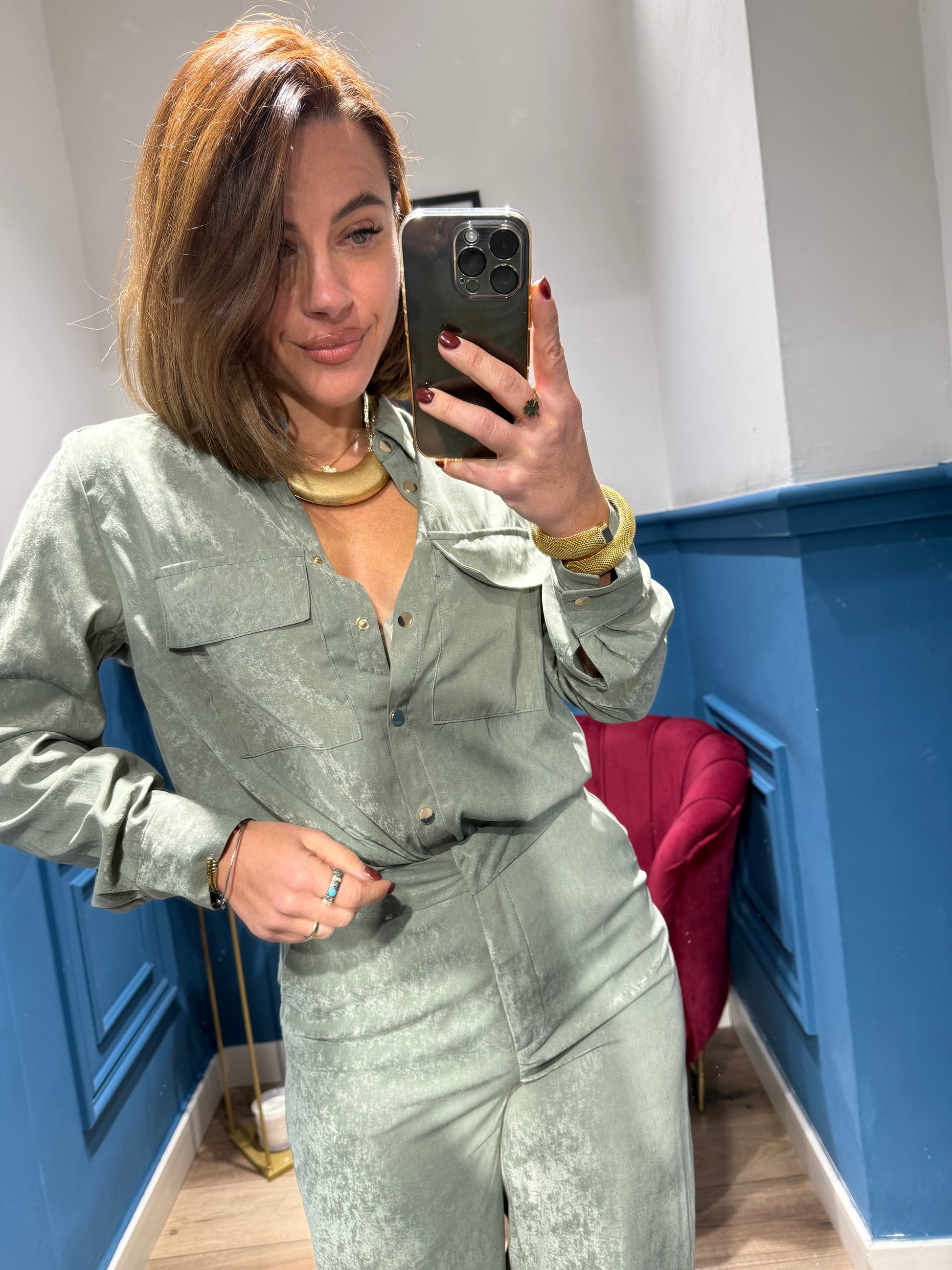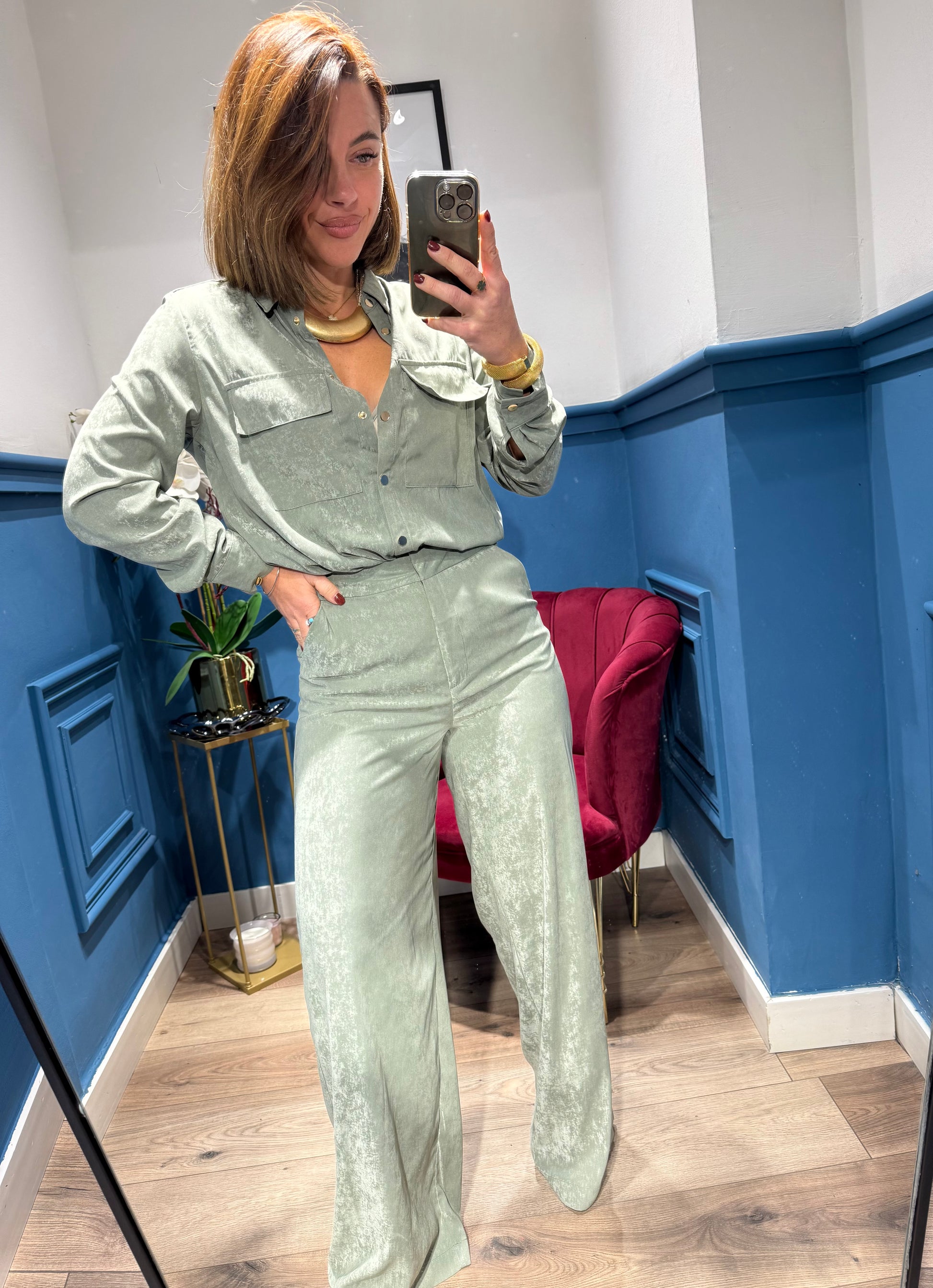 Coordinato con camicia e pantaloni di un bellissimo verde brillante.