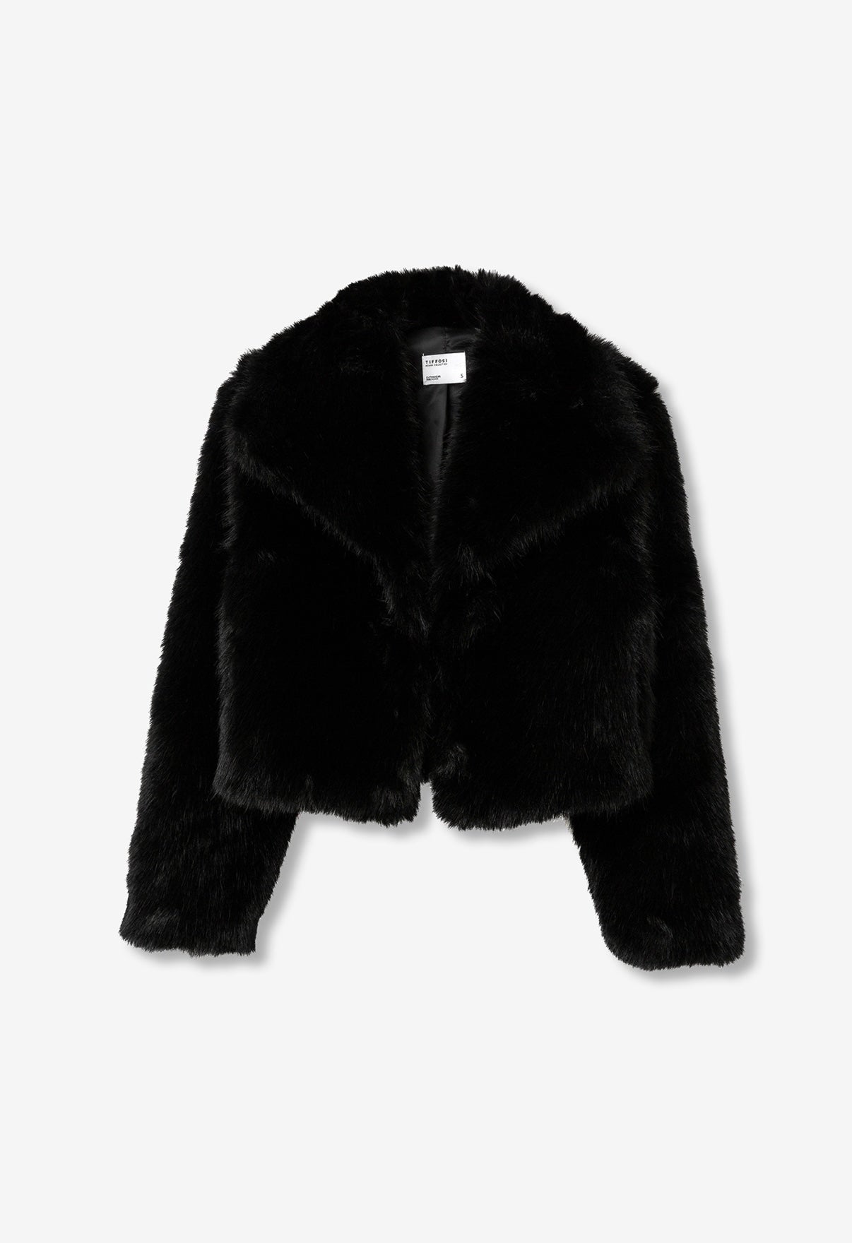 Giacca corta con colletto con risvolto e maniche lunghe. Pelliccia sintetica. Interno foderato. Tasche laterali.