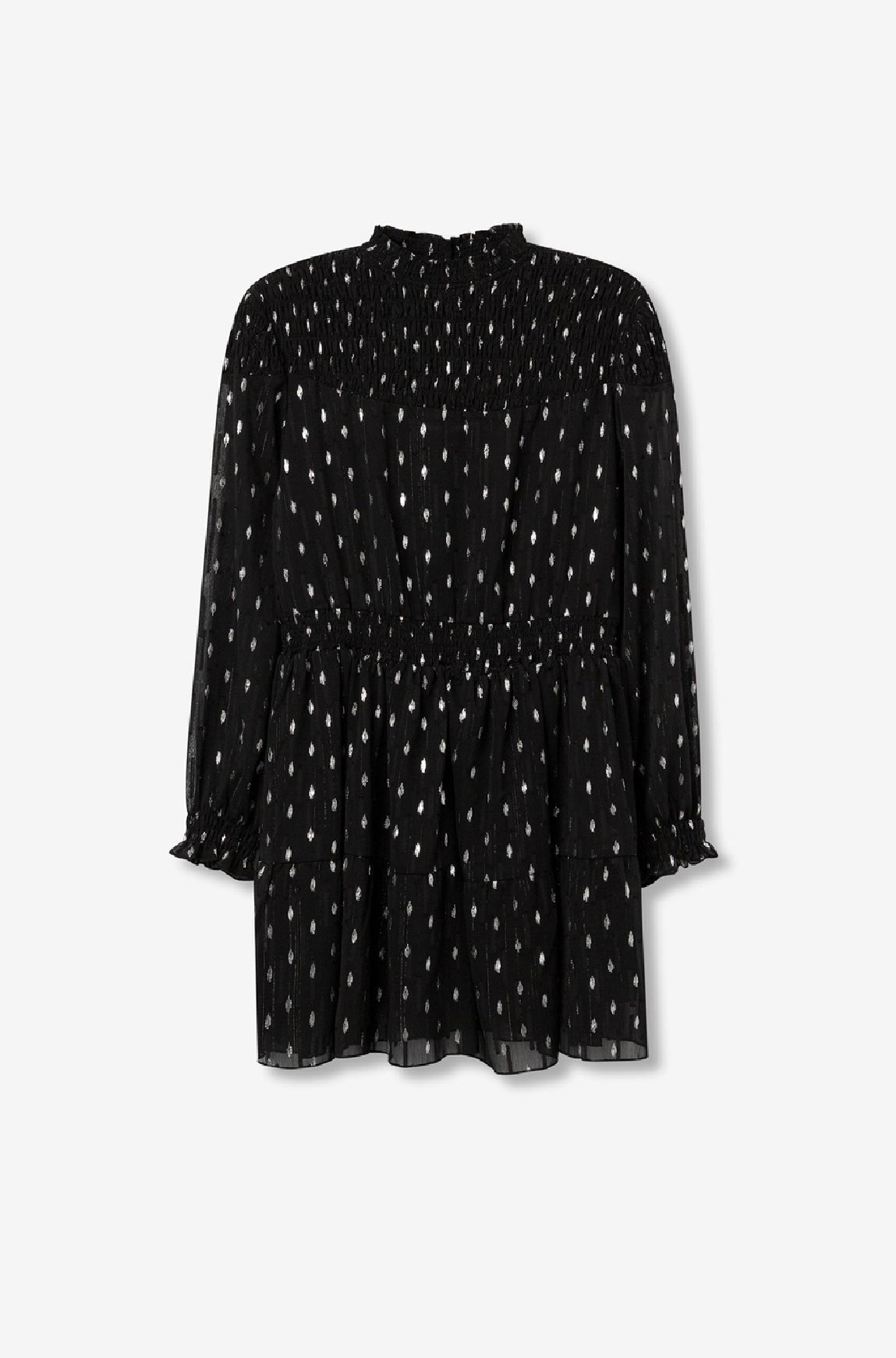 Abito in Georgette con volant ed elastico in vita e poi color argento.