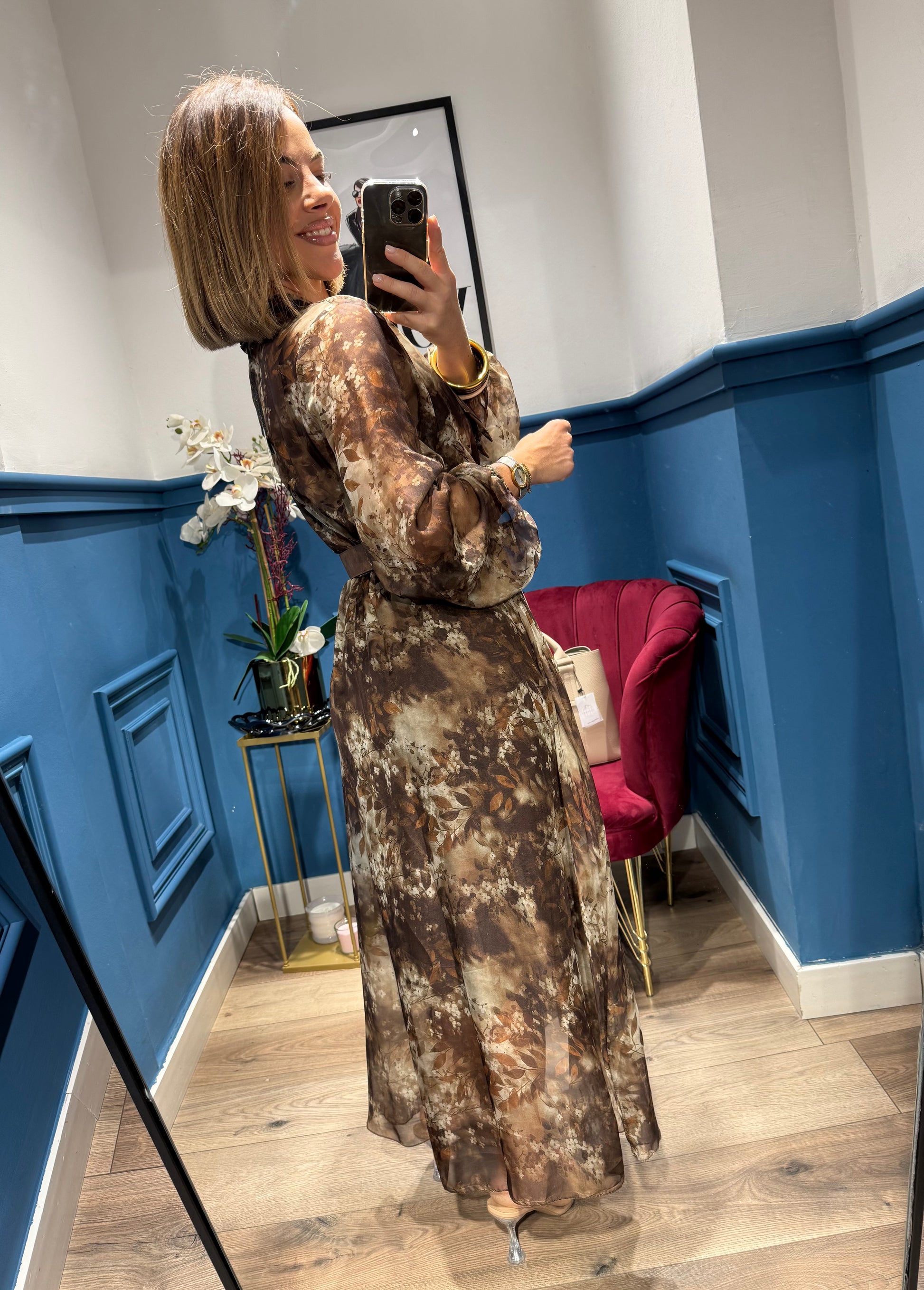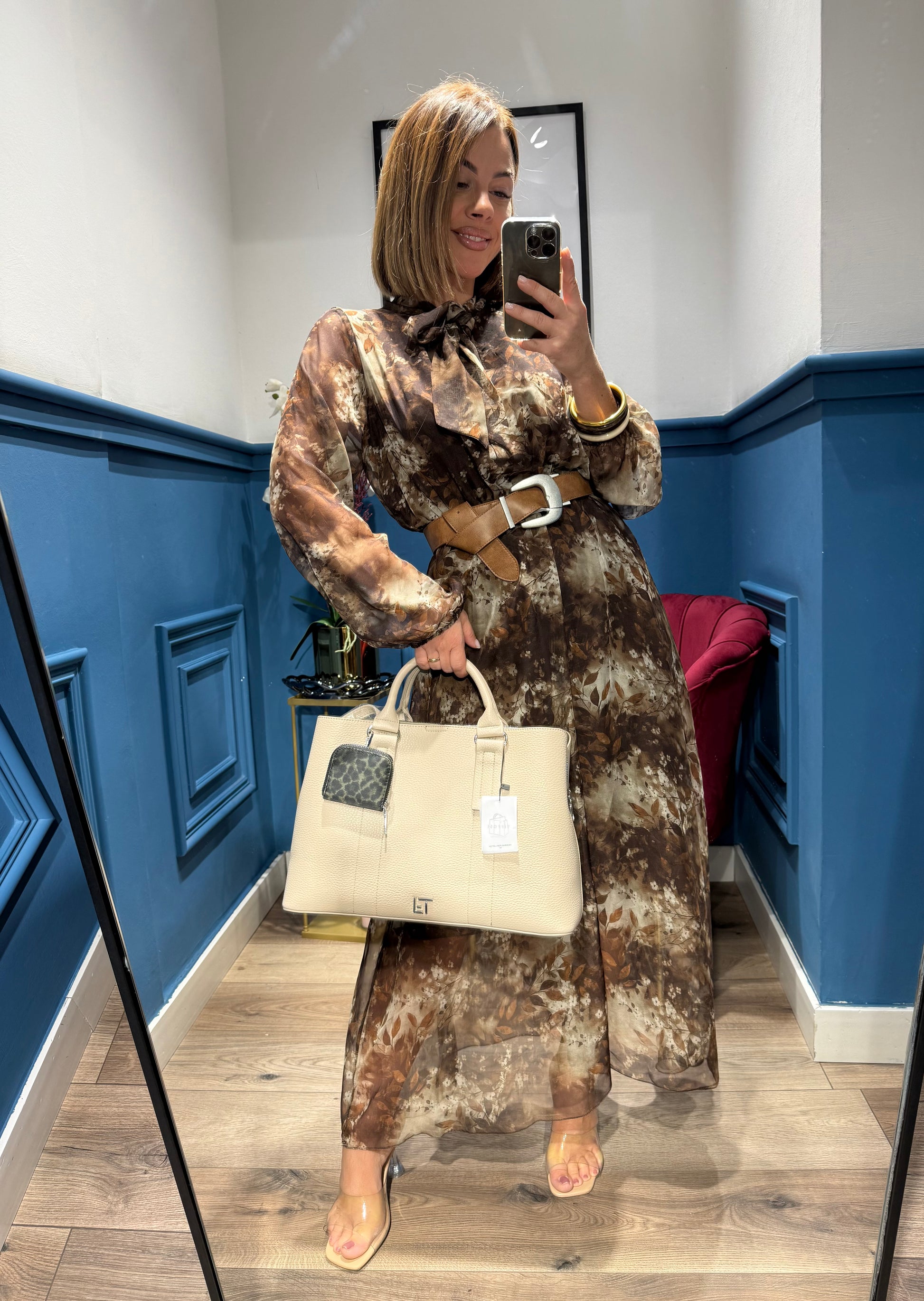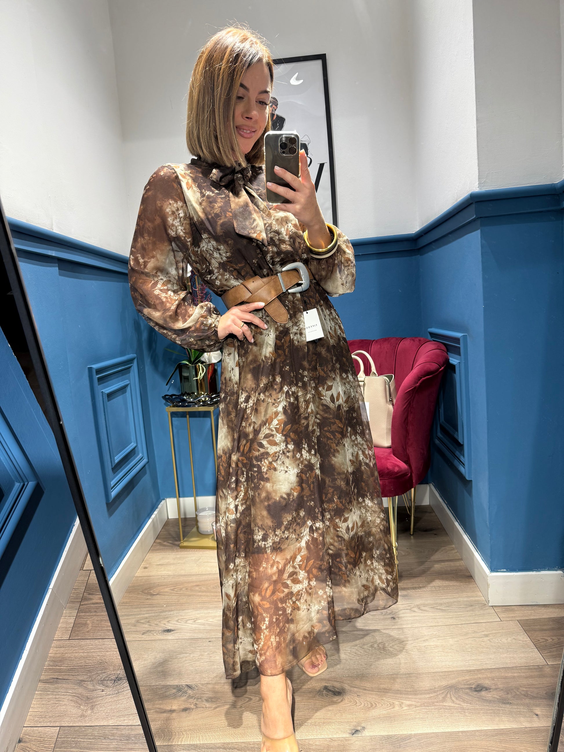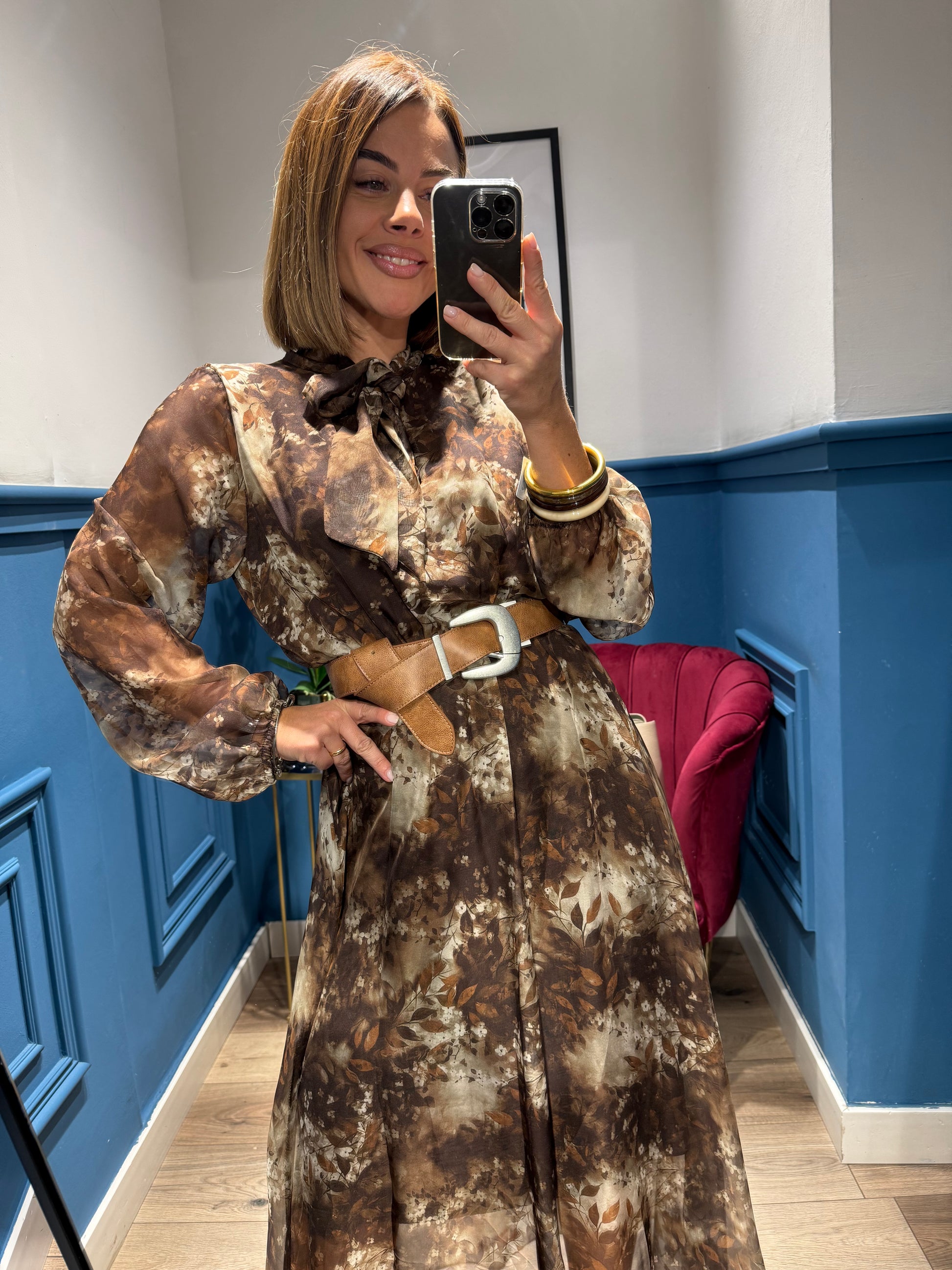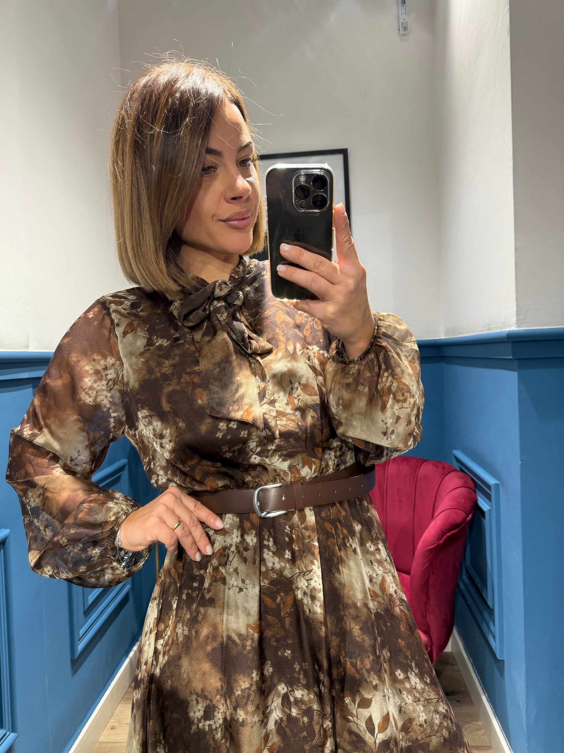 Abito fantasia foglie d’autunno disp unica variante,tg unica. E’ incluso del cinturino dell’ ultima foto.