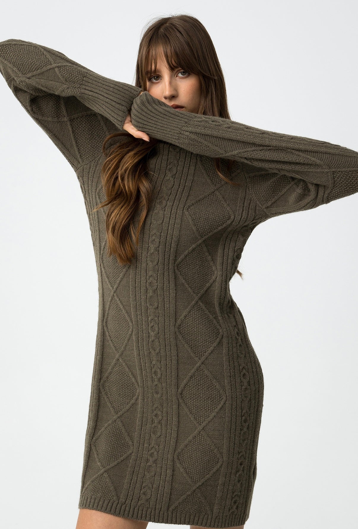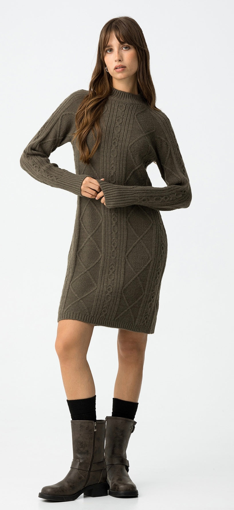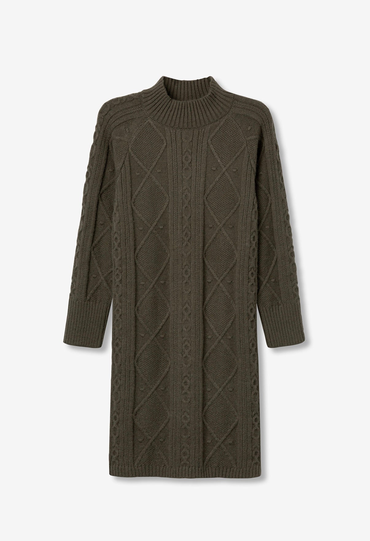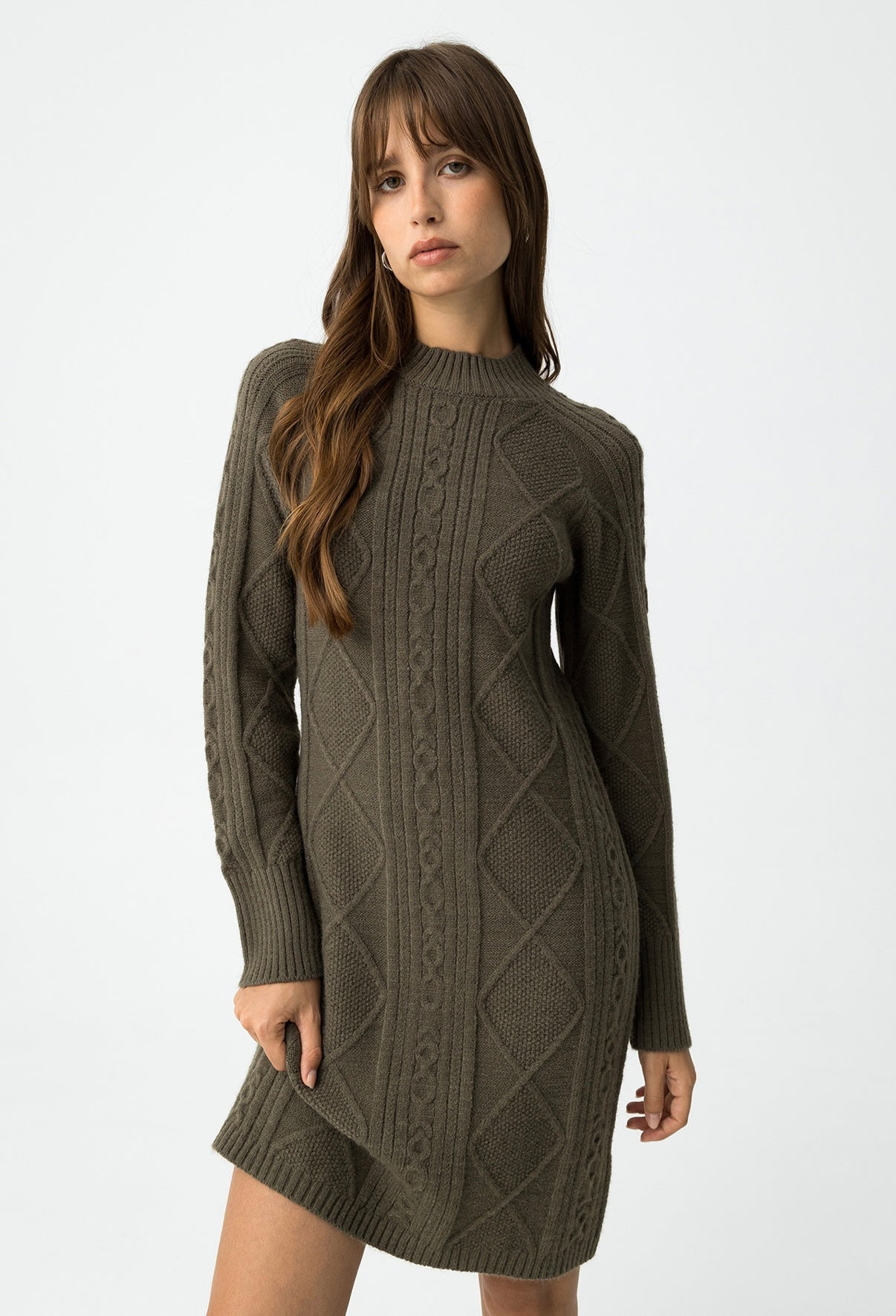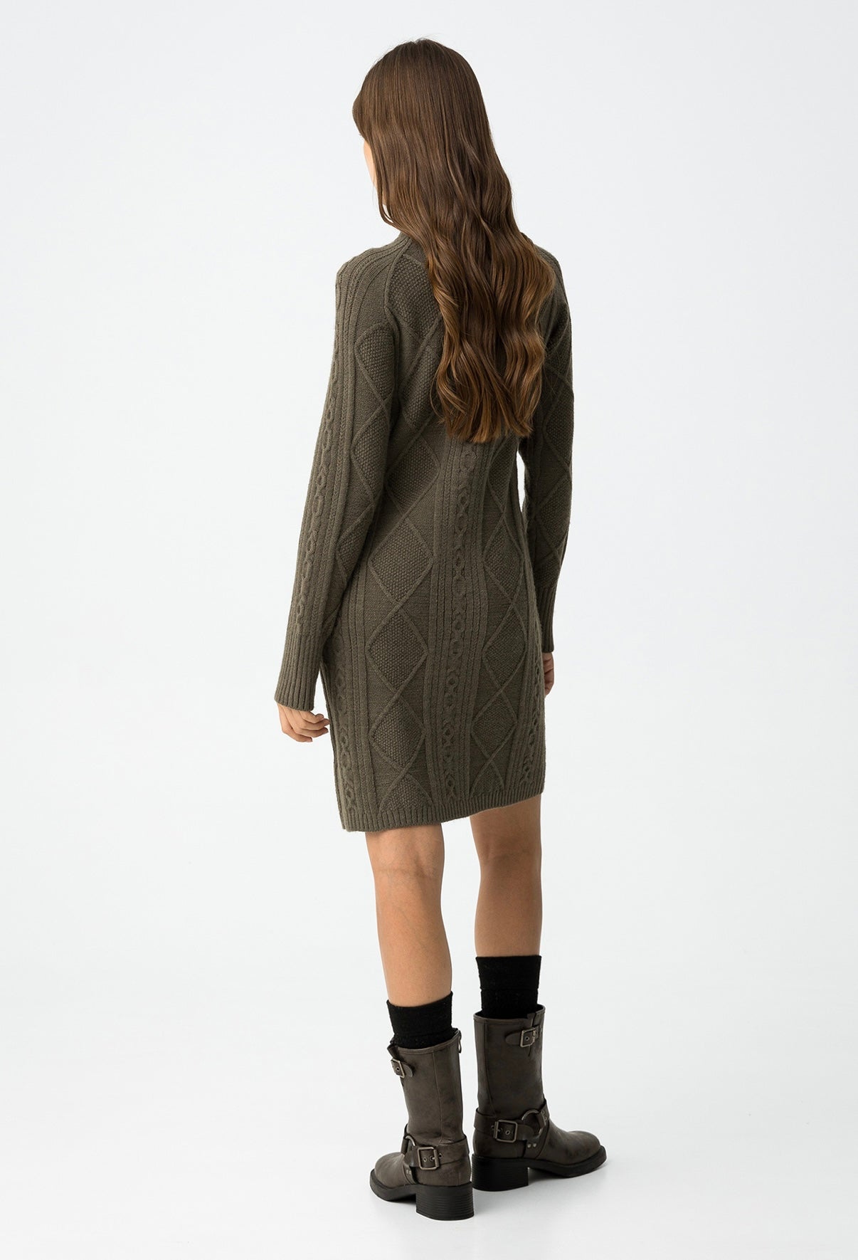 Abito in maglia a trecce slim fit con collo alto, maniche lunghe e finiture a coste.
