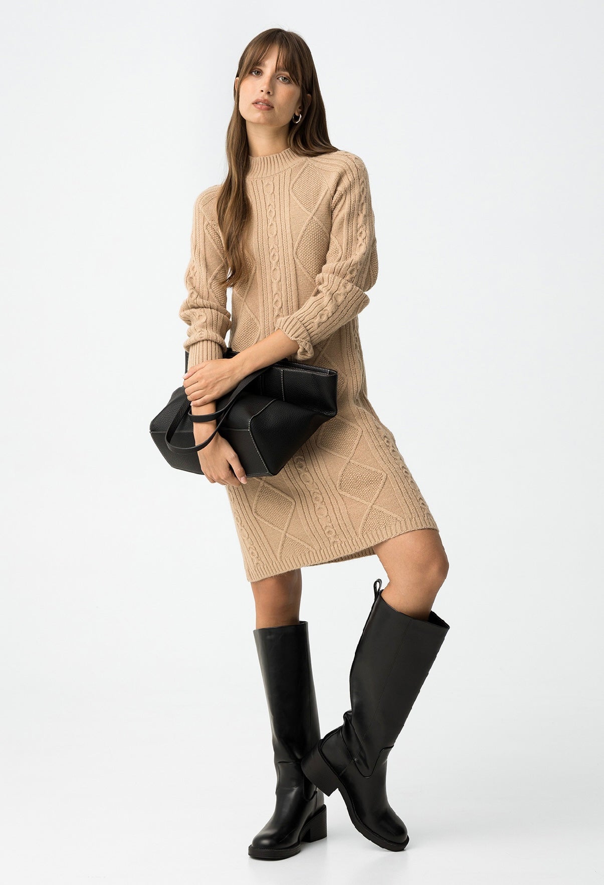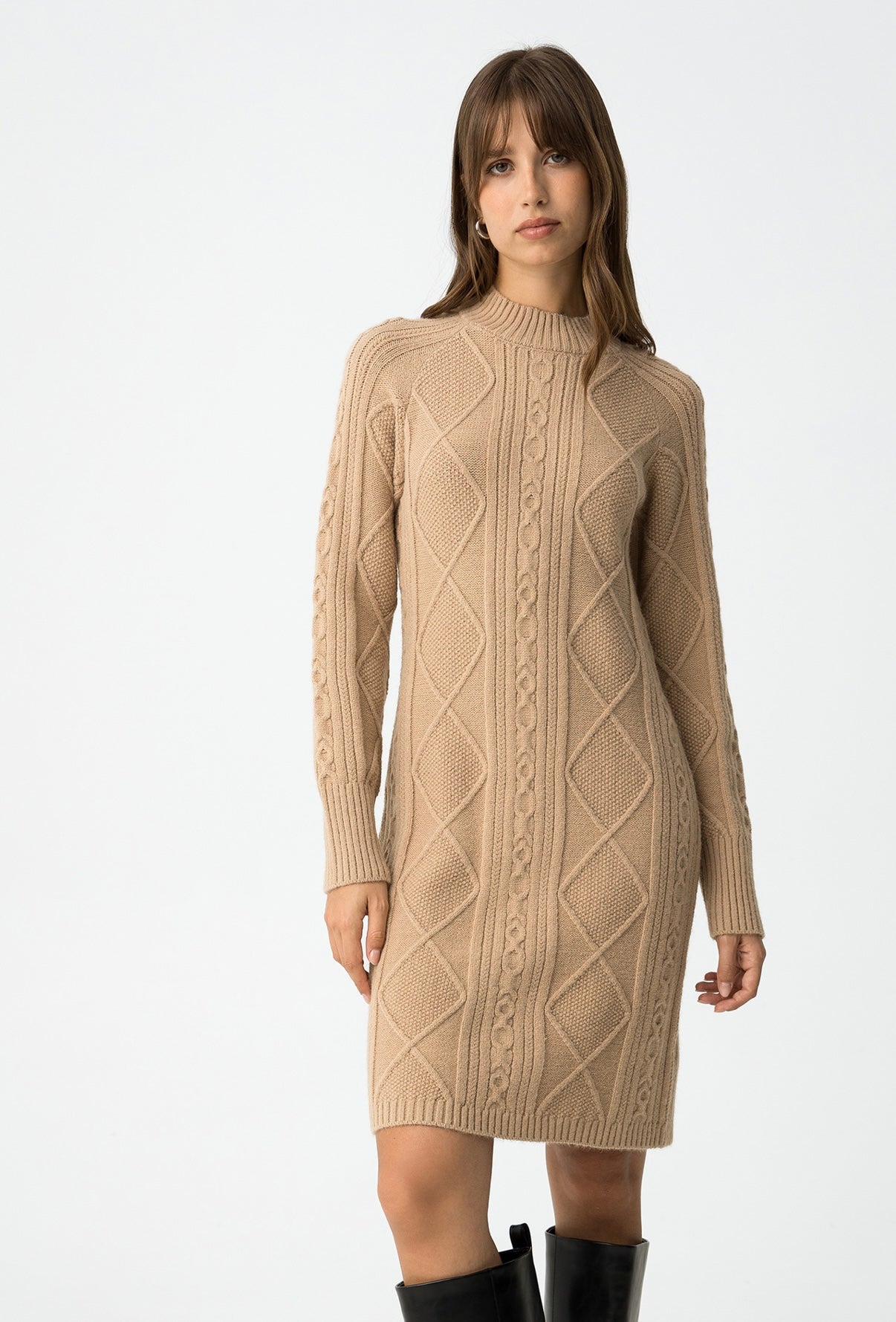Abito in maglia a trecce slim fit con collo alto, maniche lunghe e finiture a coste.