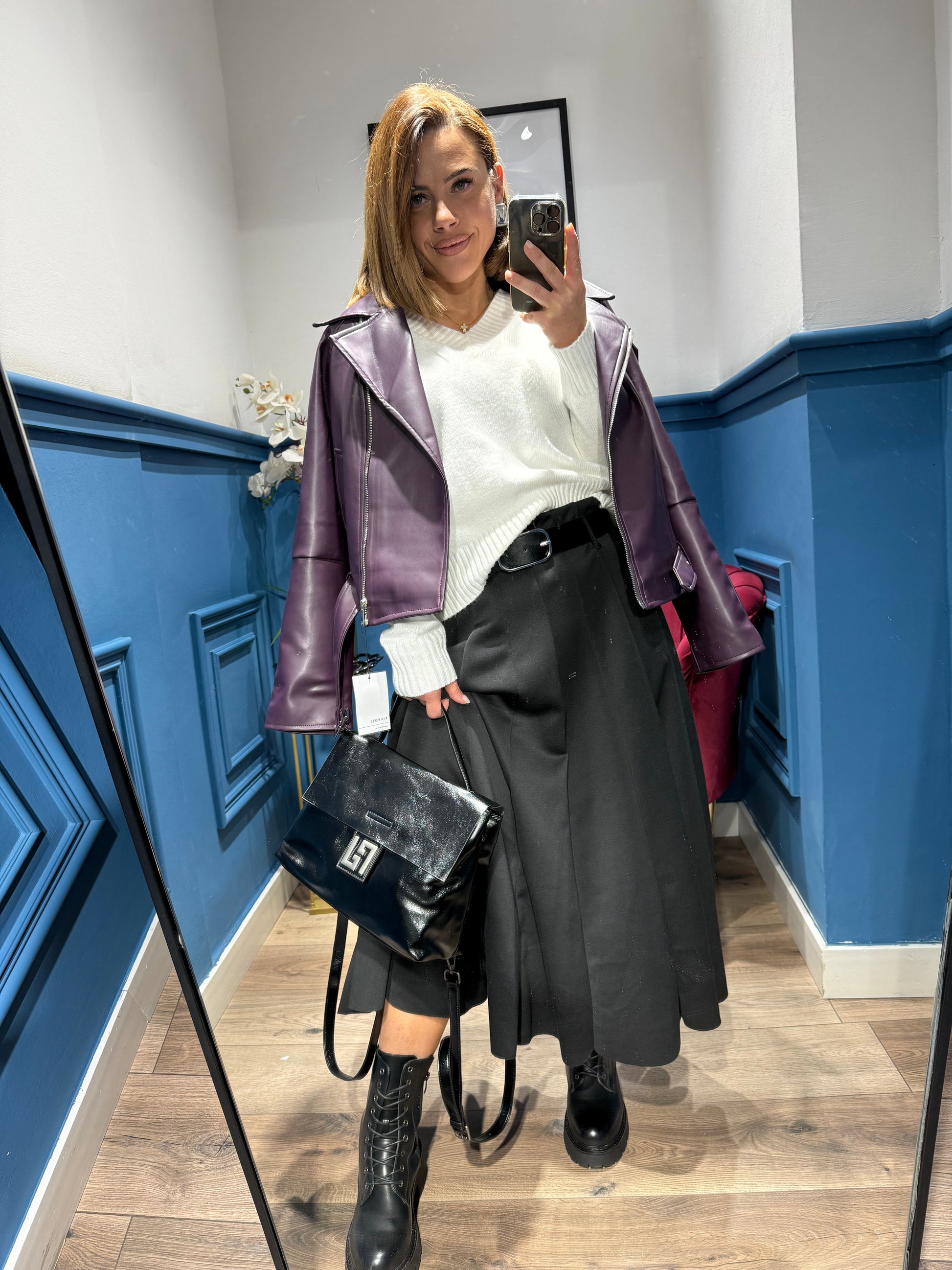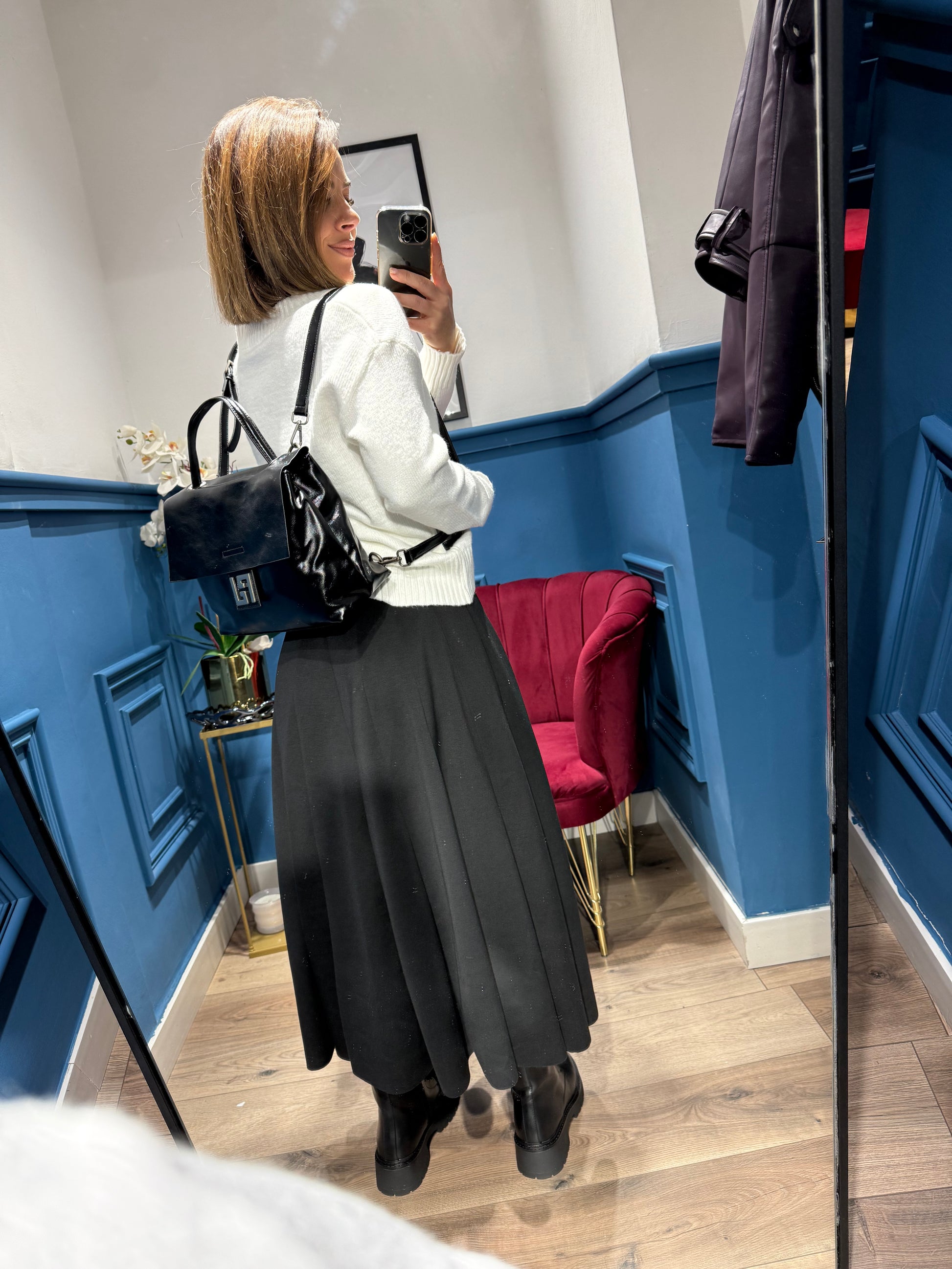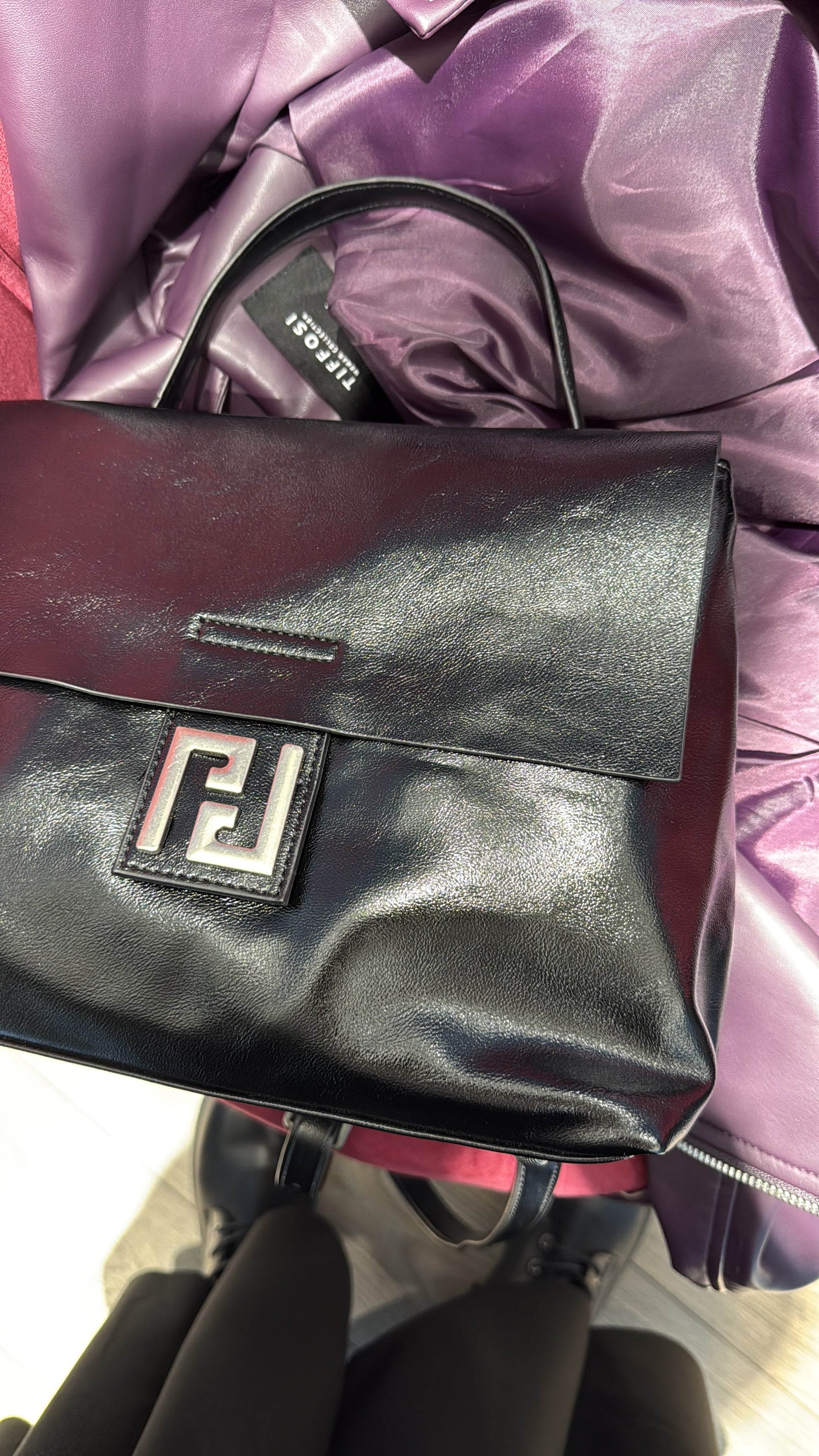 Borsa/zainetto disponibile solo in ecopelle nera lucida.