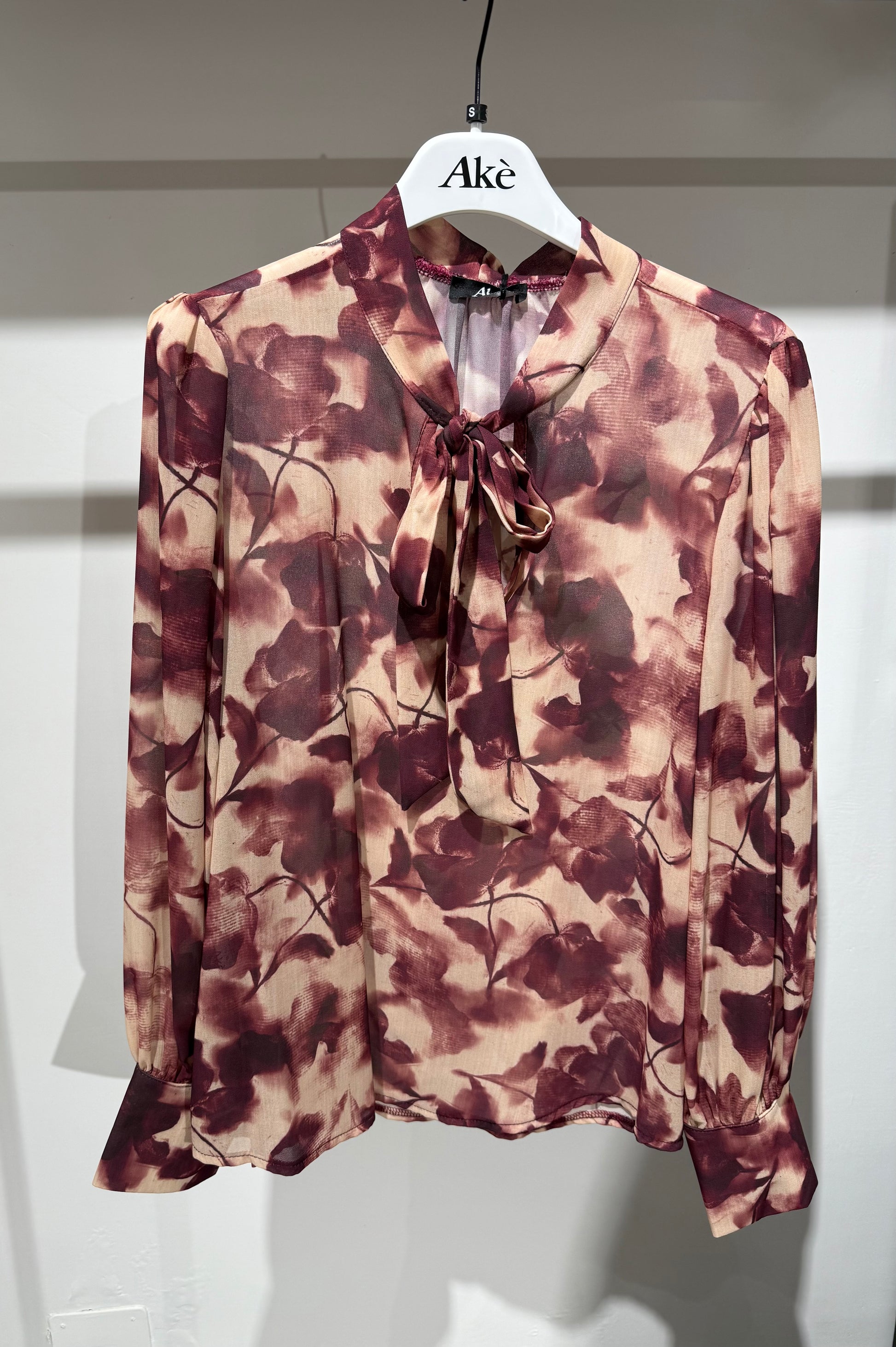 Blusa di Ake’ con petali di peonia,con fiocco e scollo ad U.