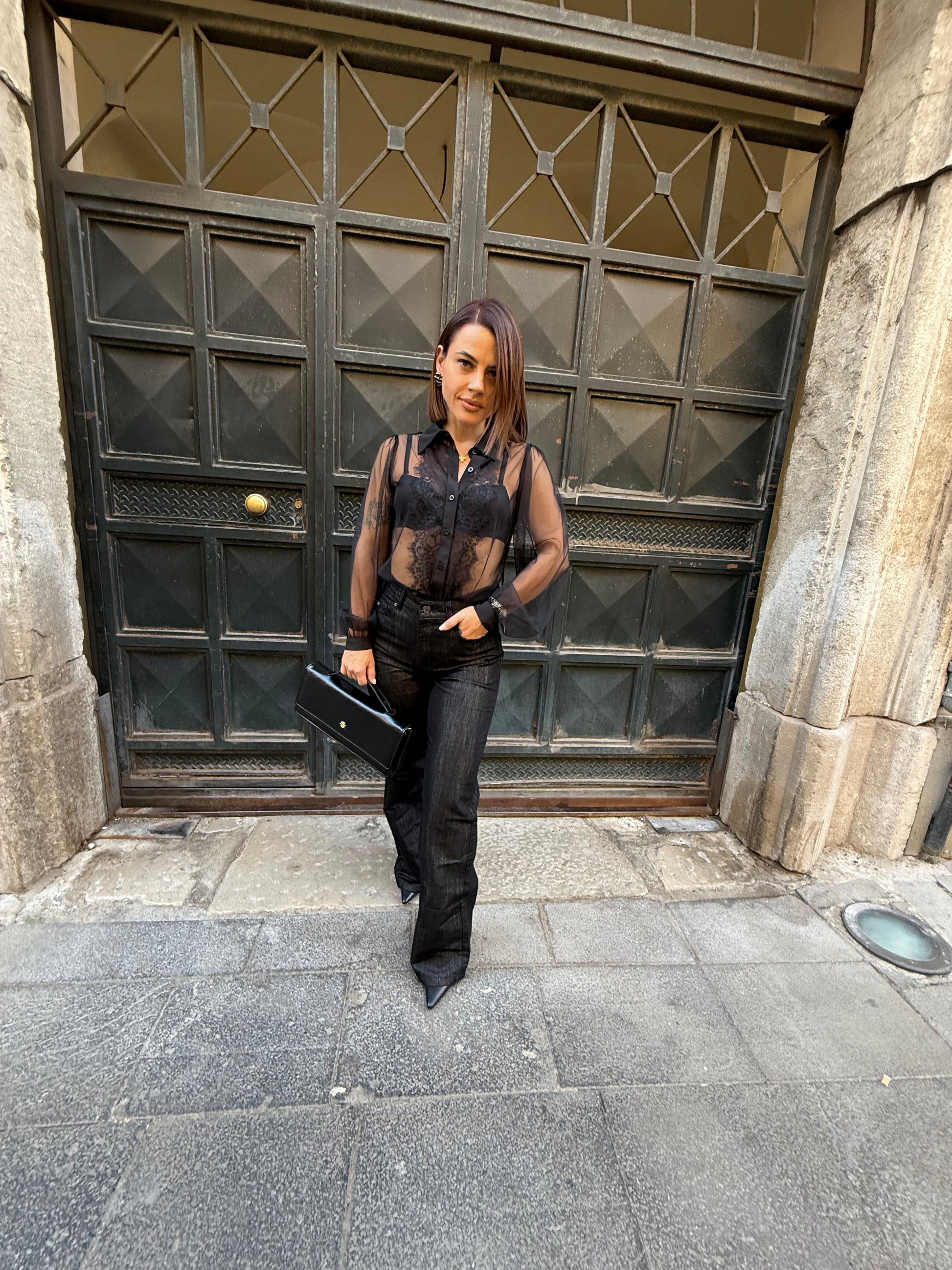 Camicia velata nera di Ake’ con dettagli in pizzo.