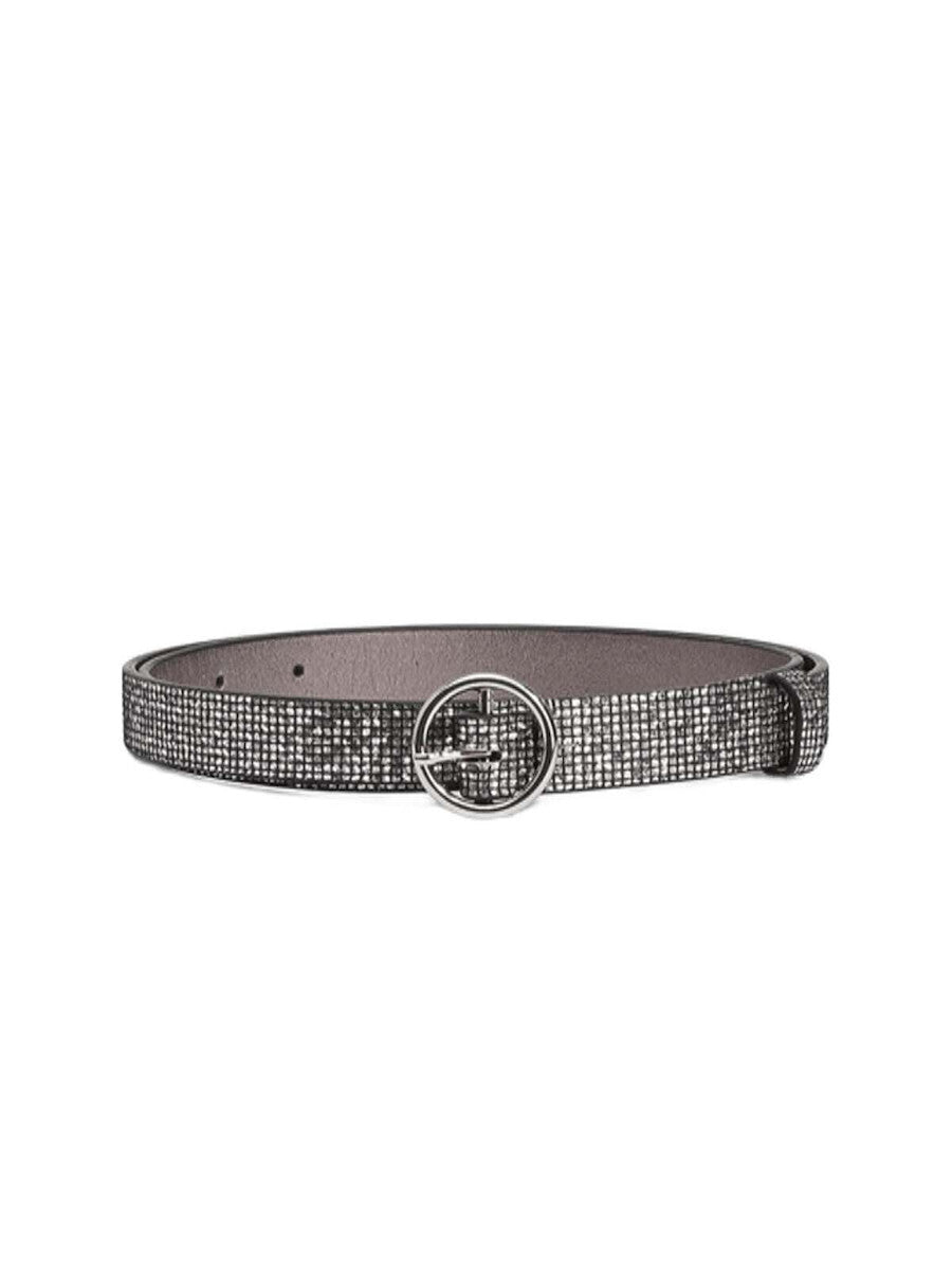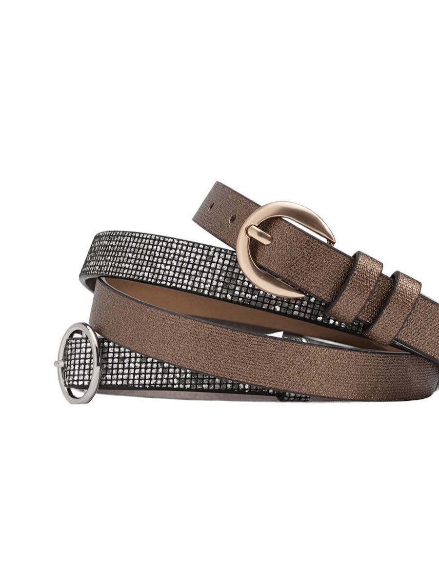 - Cintura argentata: modello con strass, fibbia argentata metallizzata, passante in pelle.