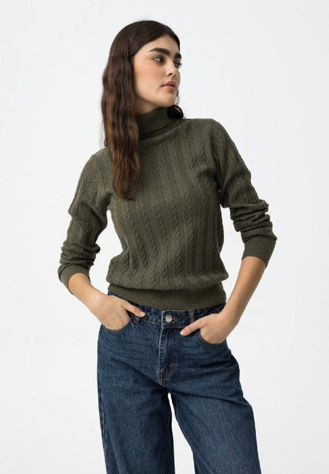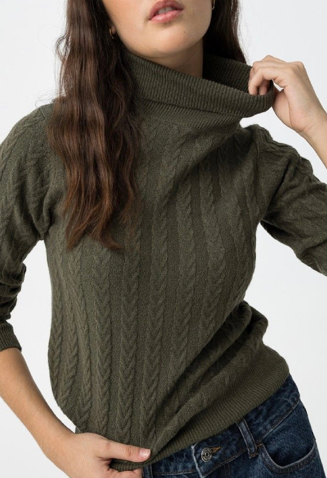 Tiffosi maglione con collo alto e trecce disponibile verde e panna.