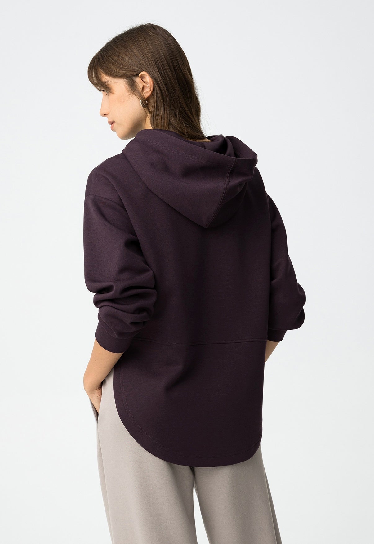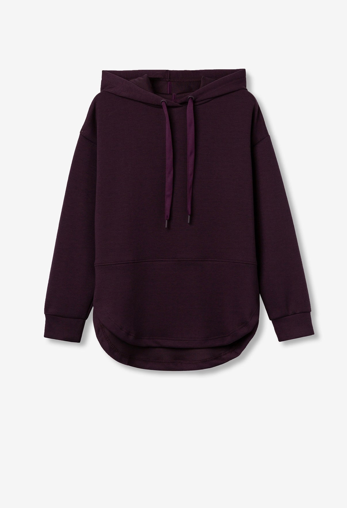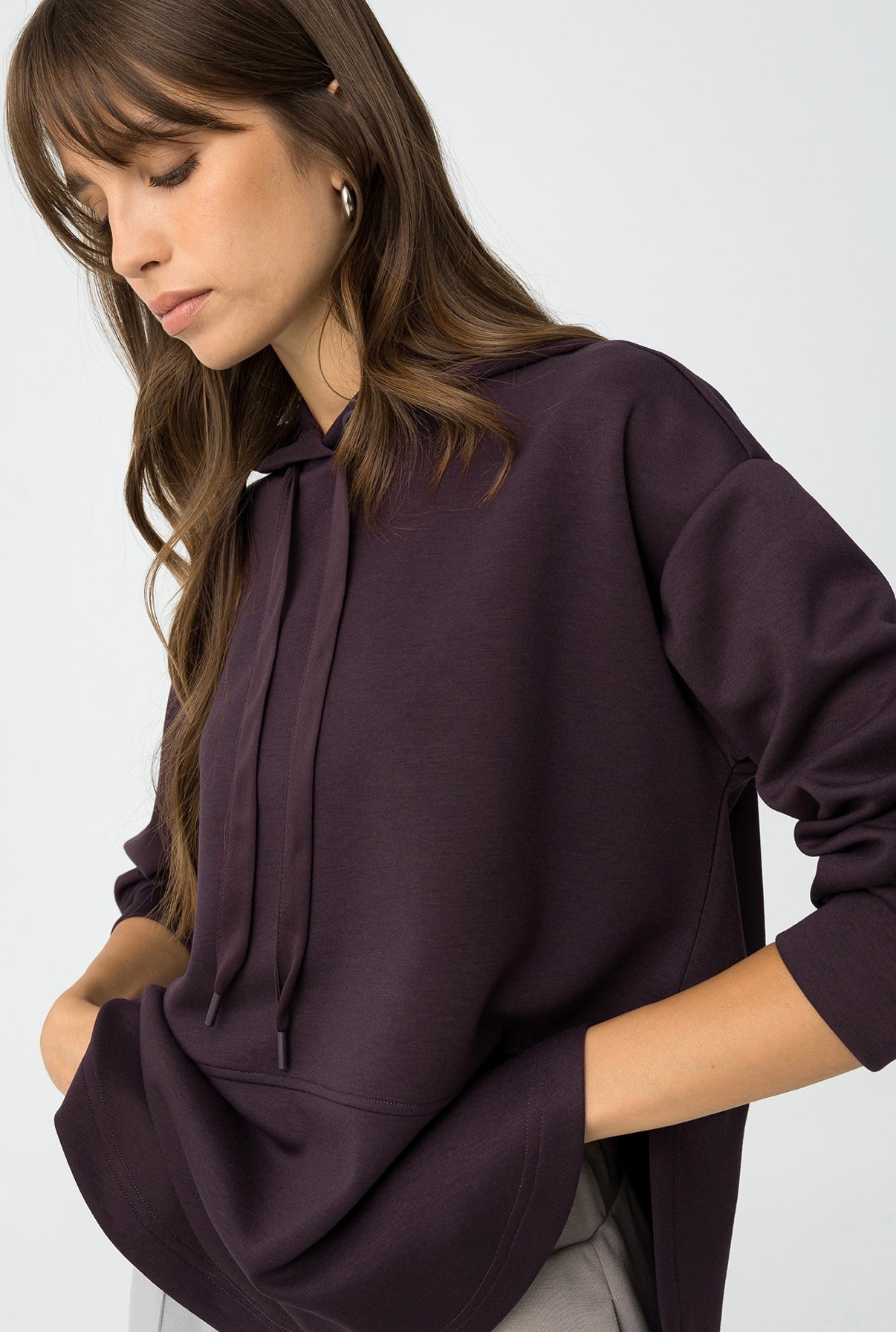 Felpa regular fit con cappuccio regolabile e maniche lunghe. Orlo curvo asimmetrico con spacchi laterali.