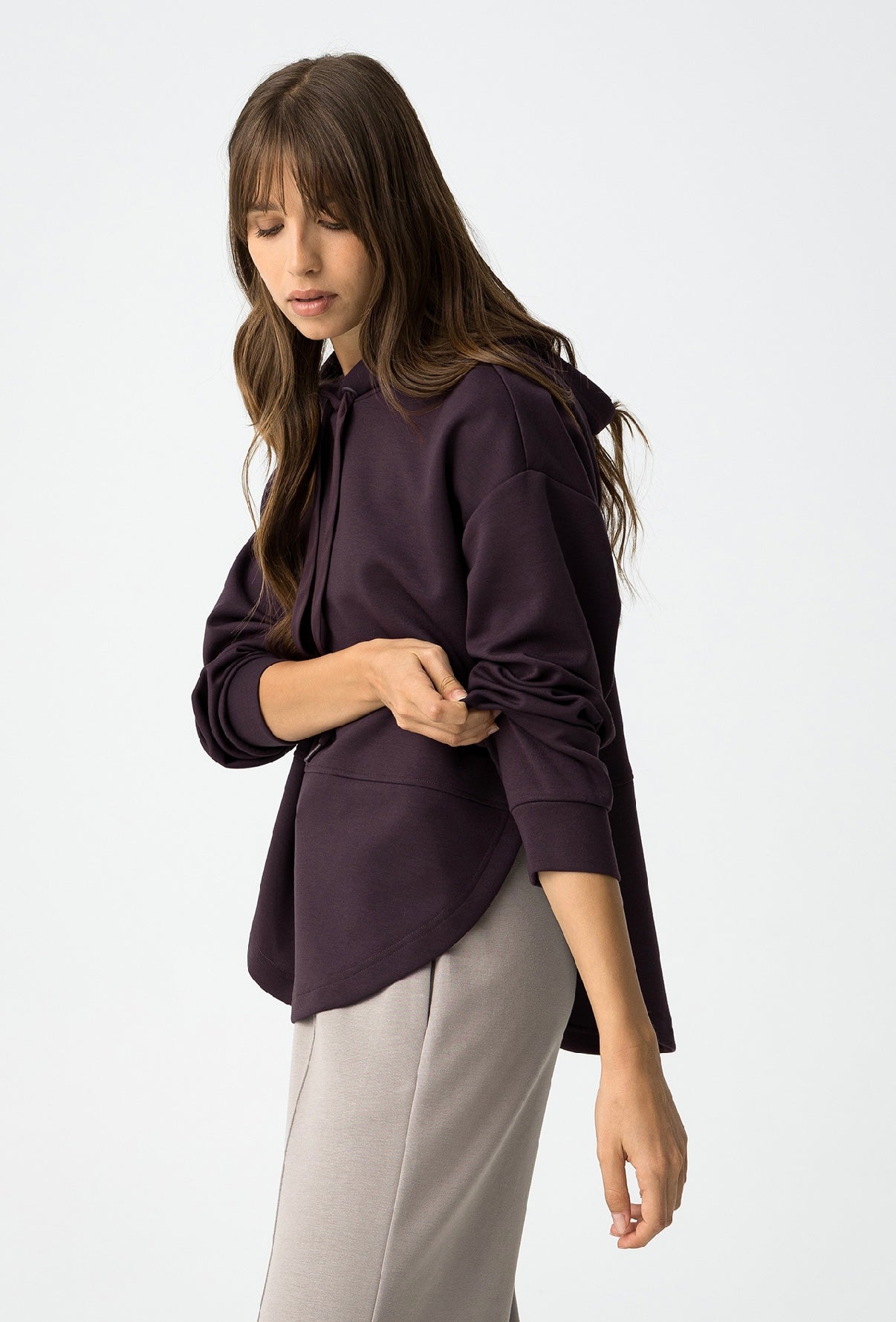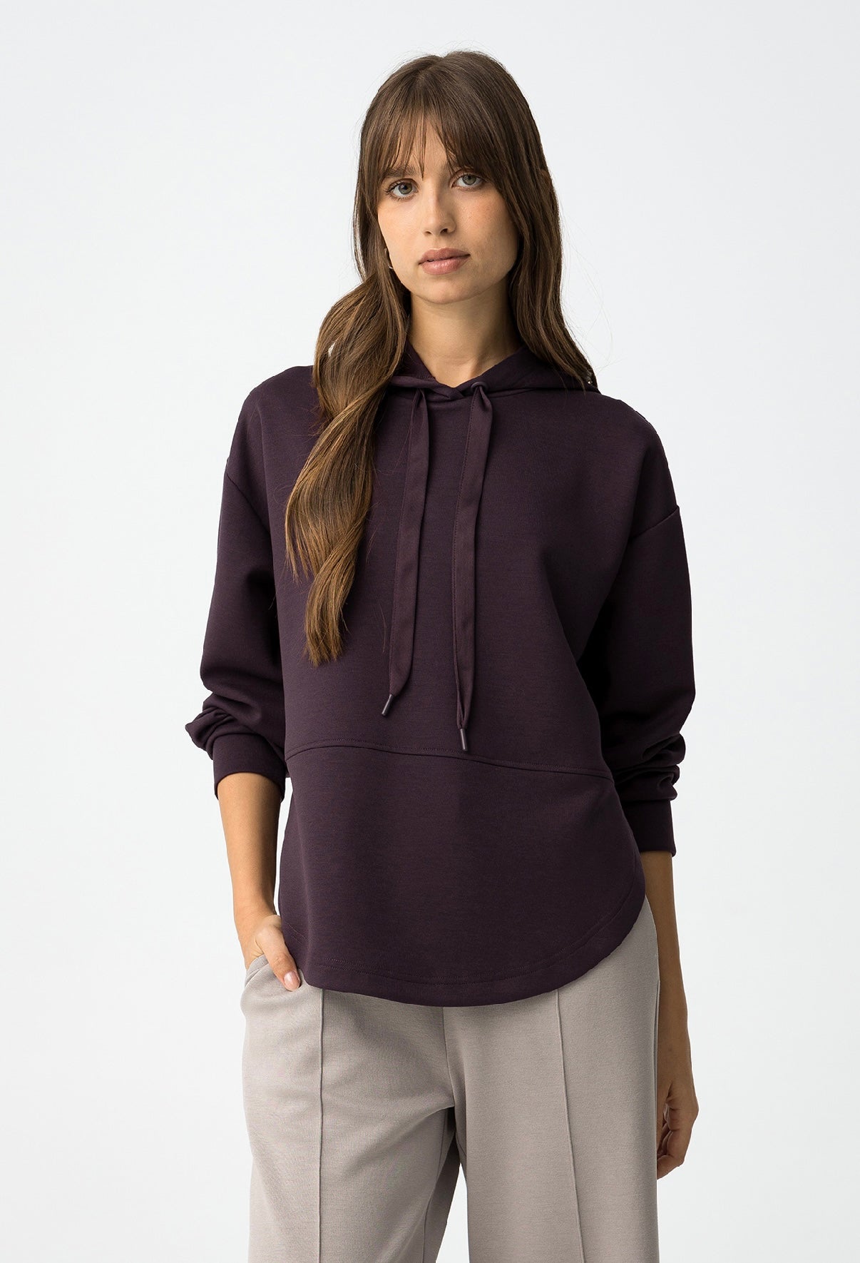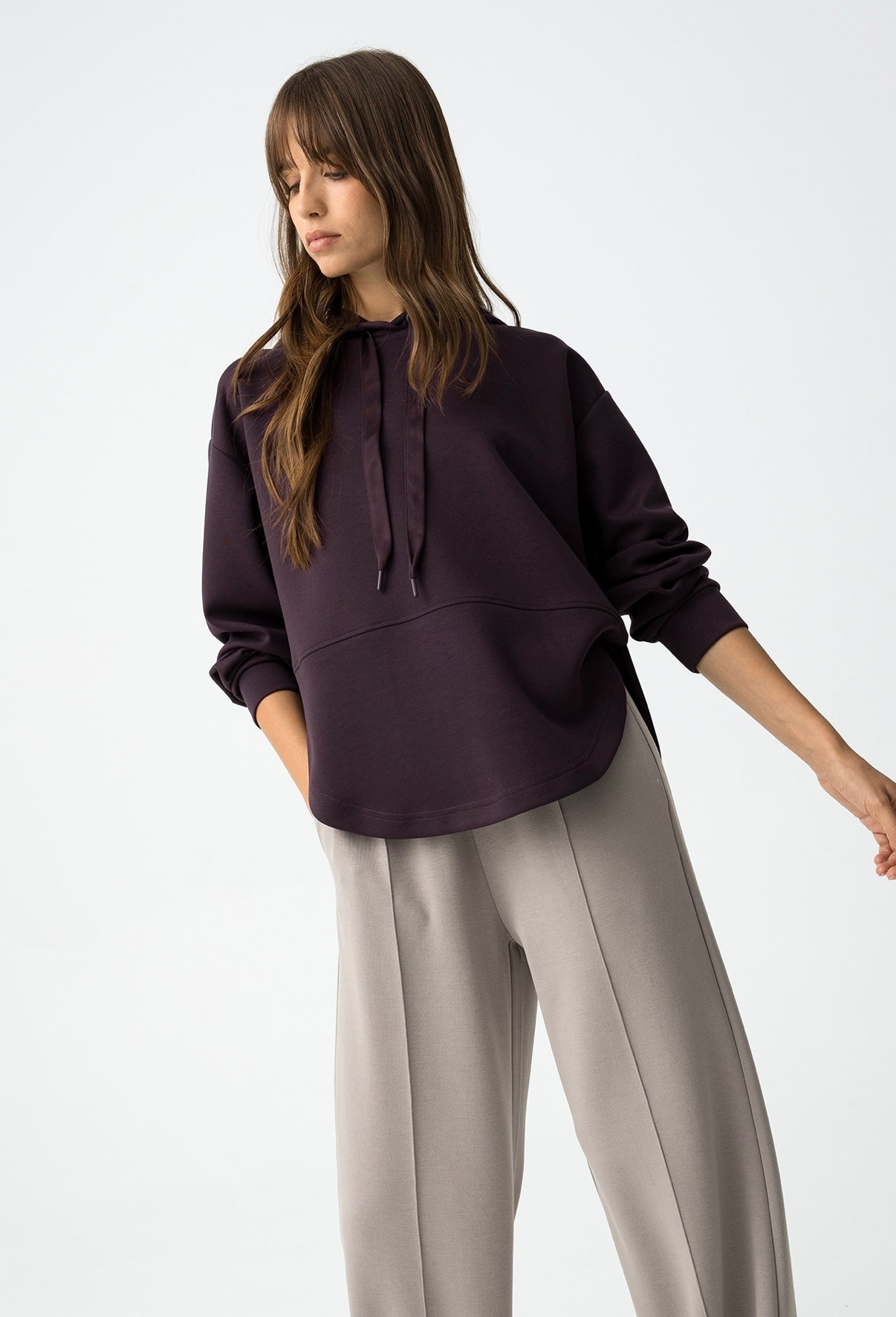 Felpa regular fit con cappuccio regolabile e maniche lunghe. Orlo curvo asimmetrico con spacchi laterali.