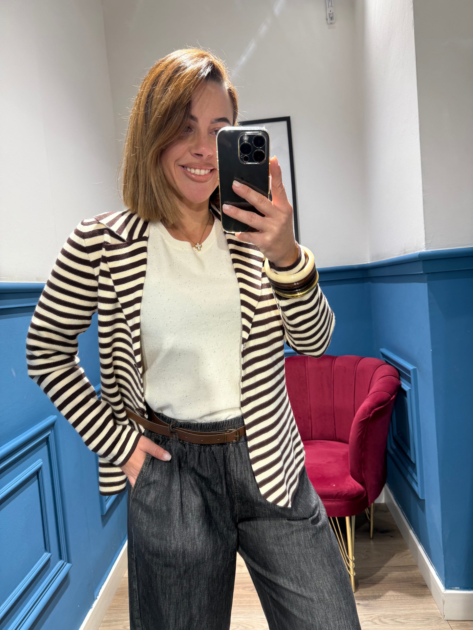 Giacca in maglia fantasia righe,tg unica.