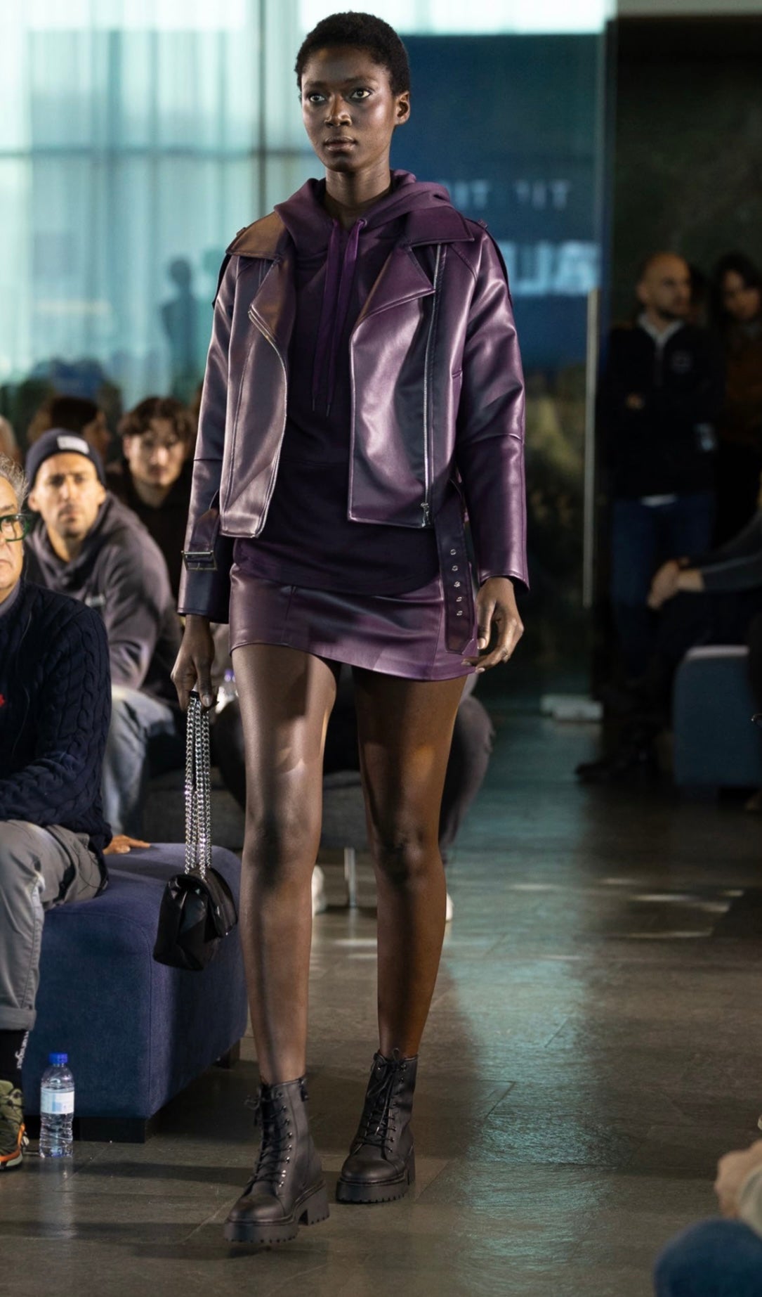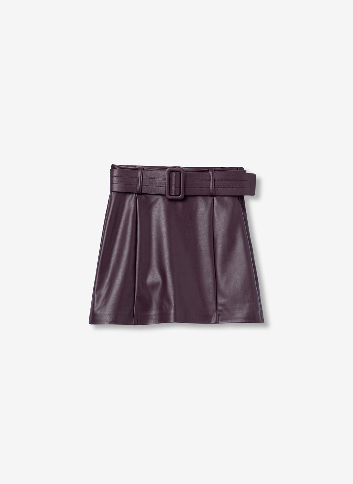 Minigonna in ecopelle con cintura rimovibile e chiusura laterale con zip.