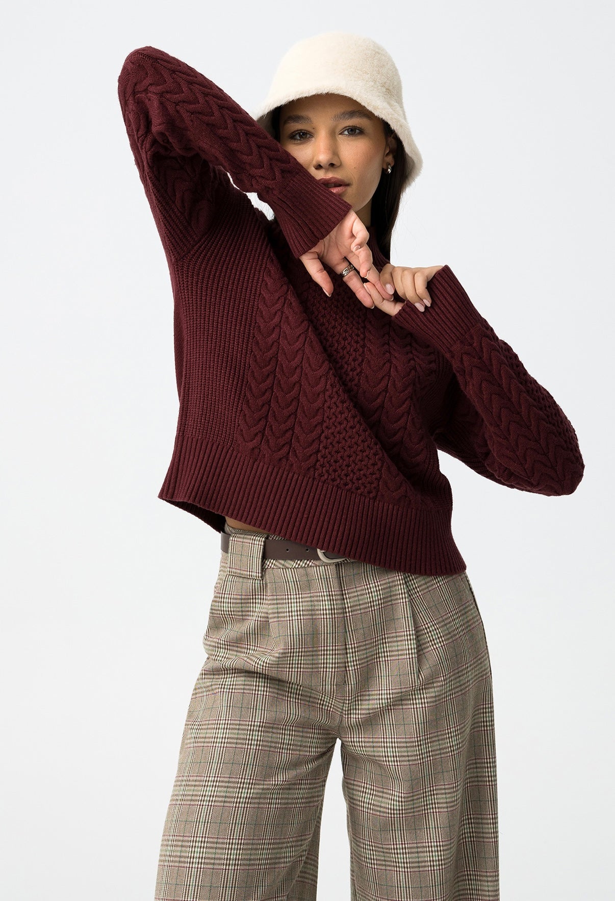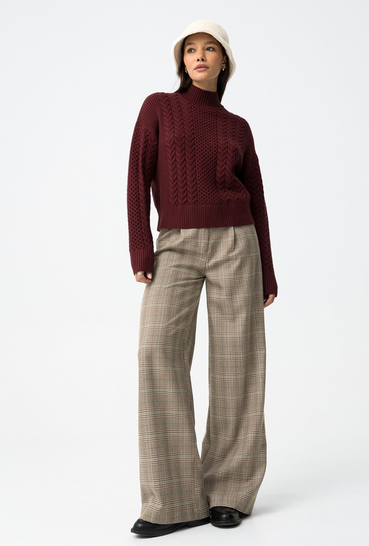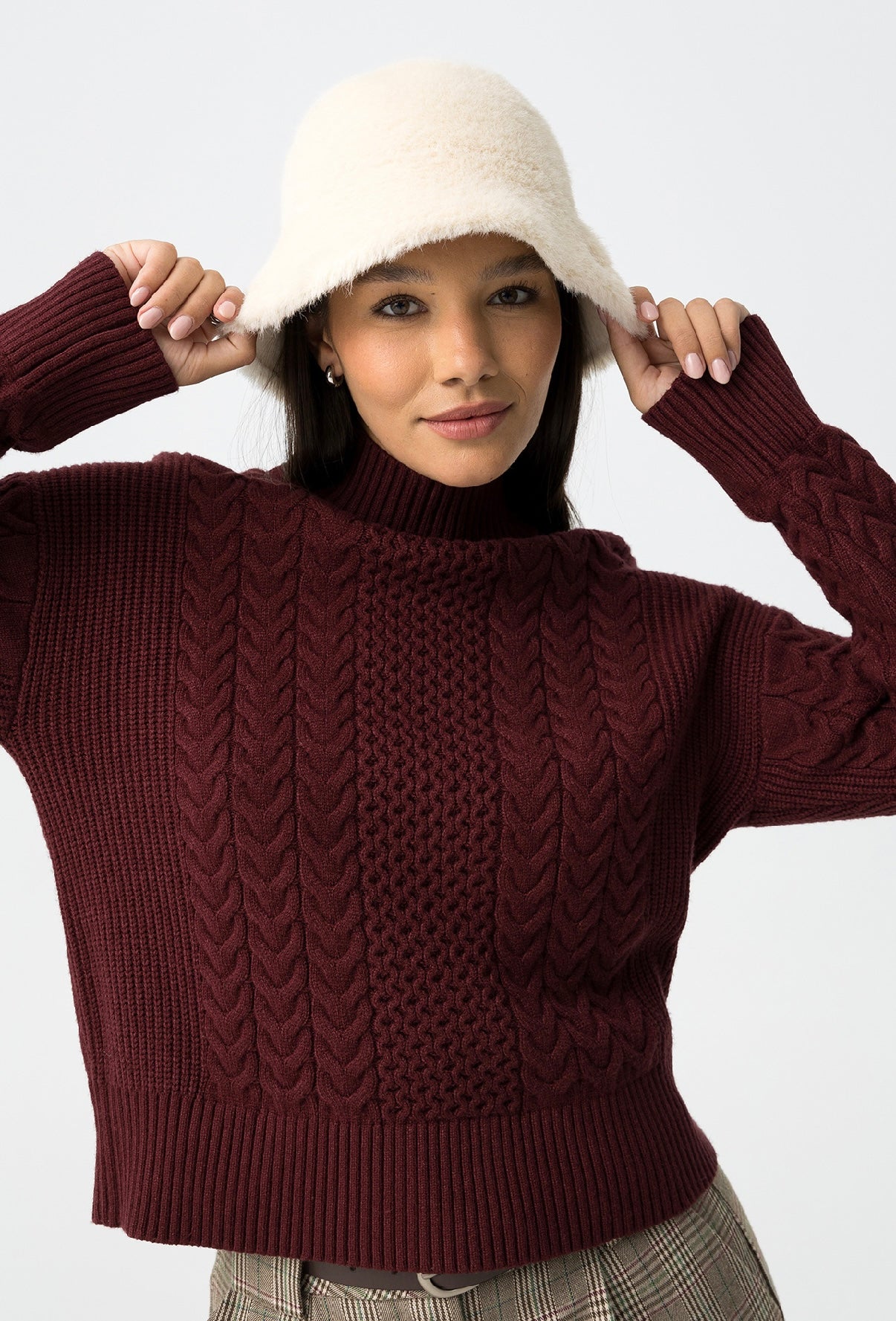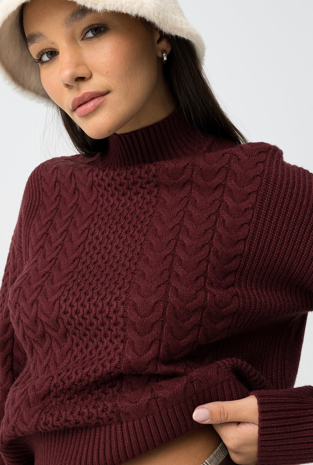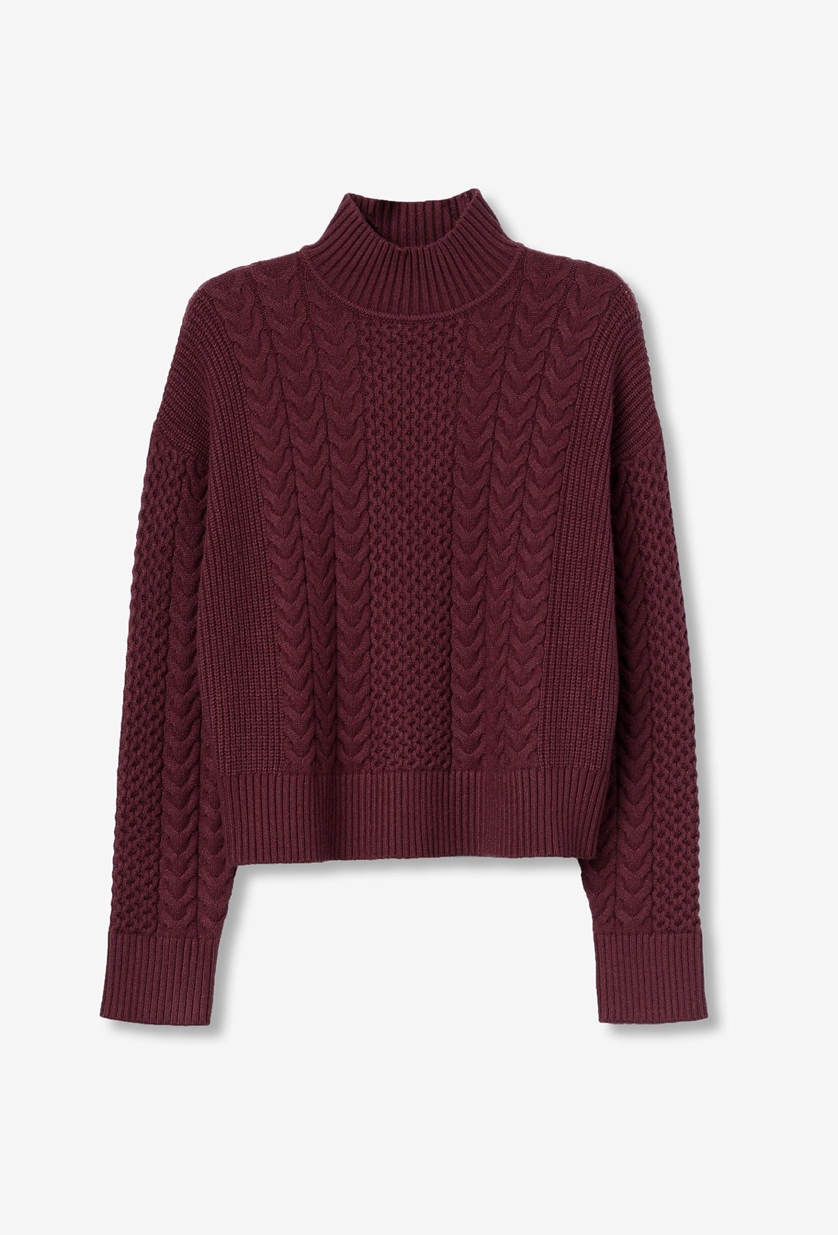 Maglione a trecce dalla vestibilità regolare con collo alto, maniche lunghe e finiture a coste.