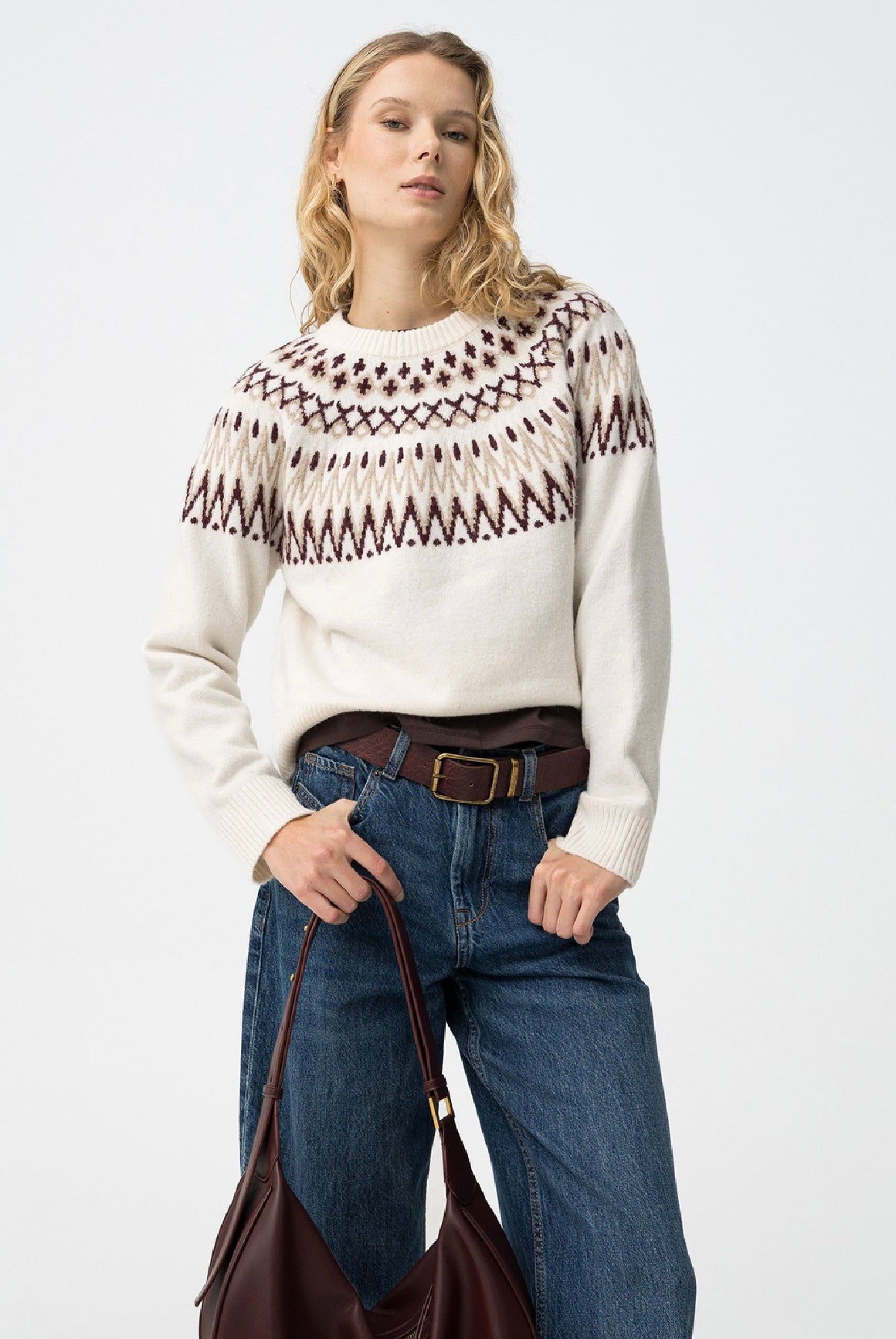 Maglione in Jersey regular fit con design fair isle, girocollo e manica larga.