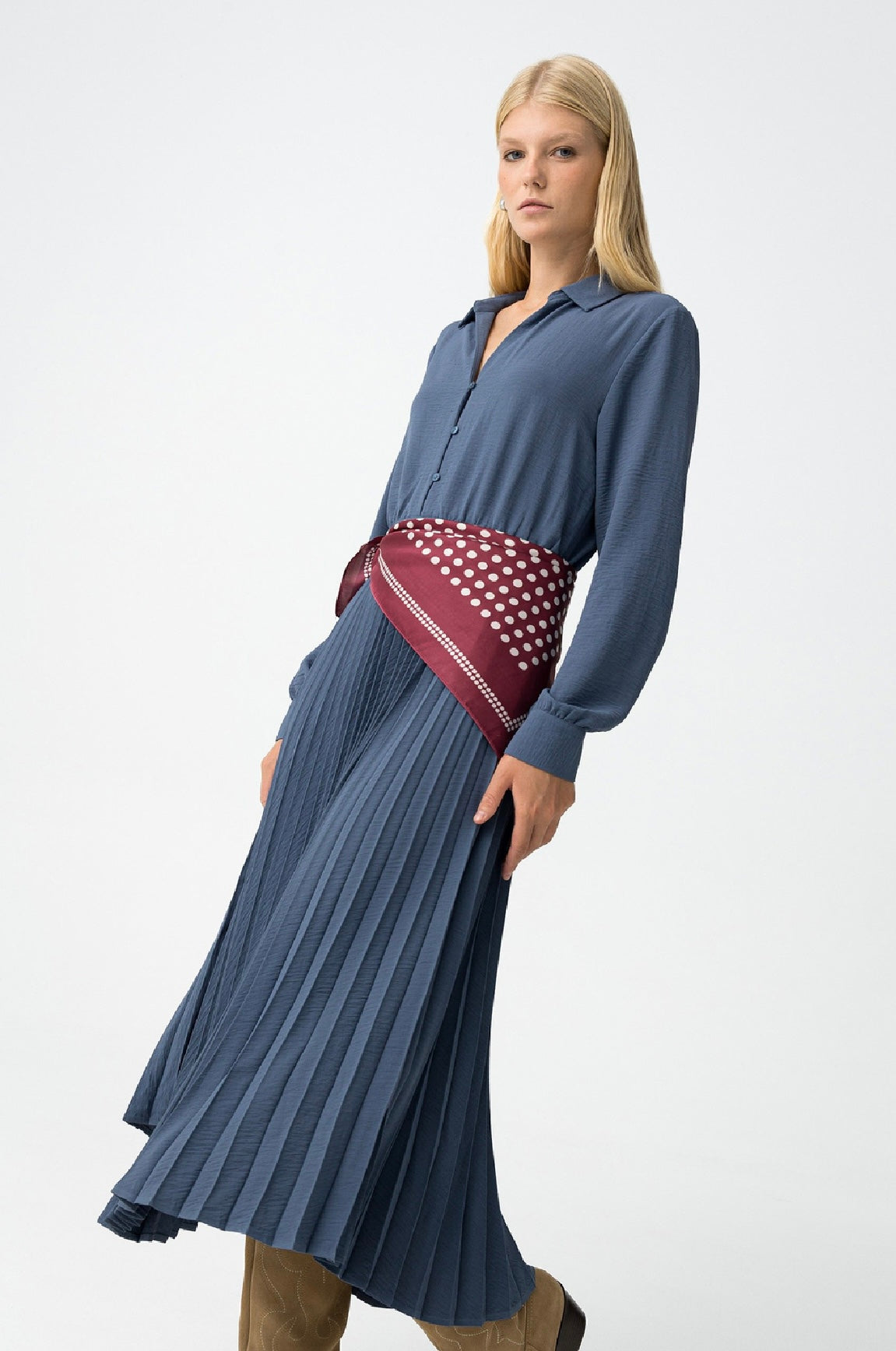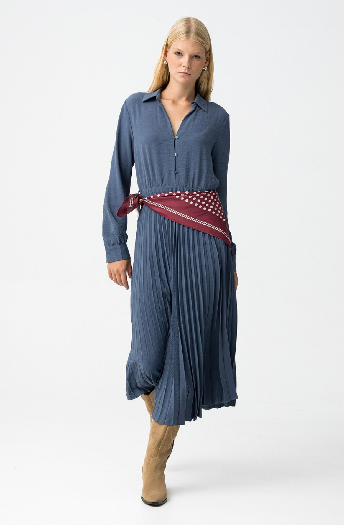 Abito plissettato disp in rosso e azzurro.