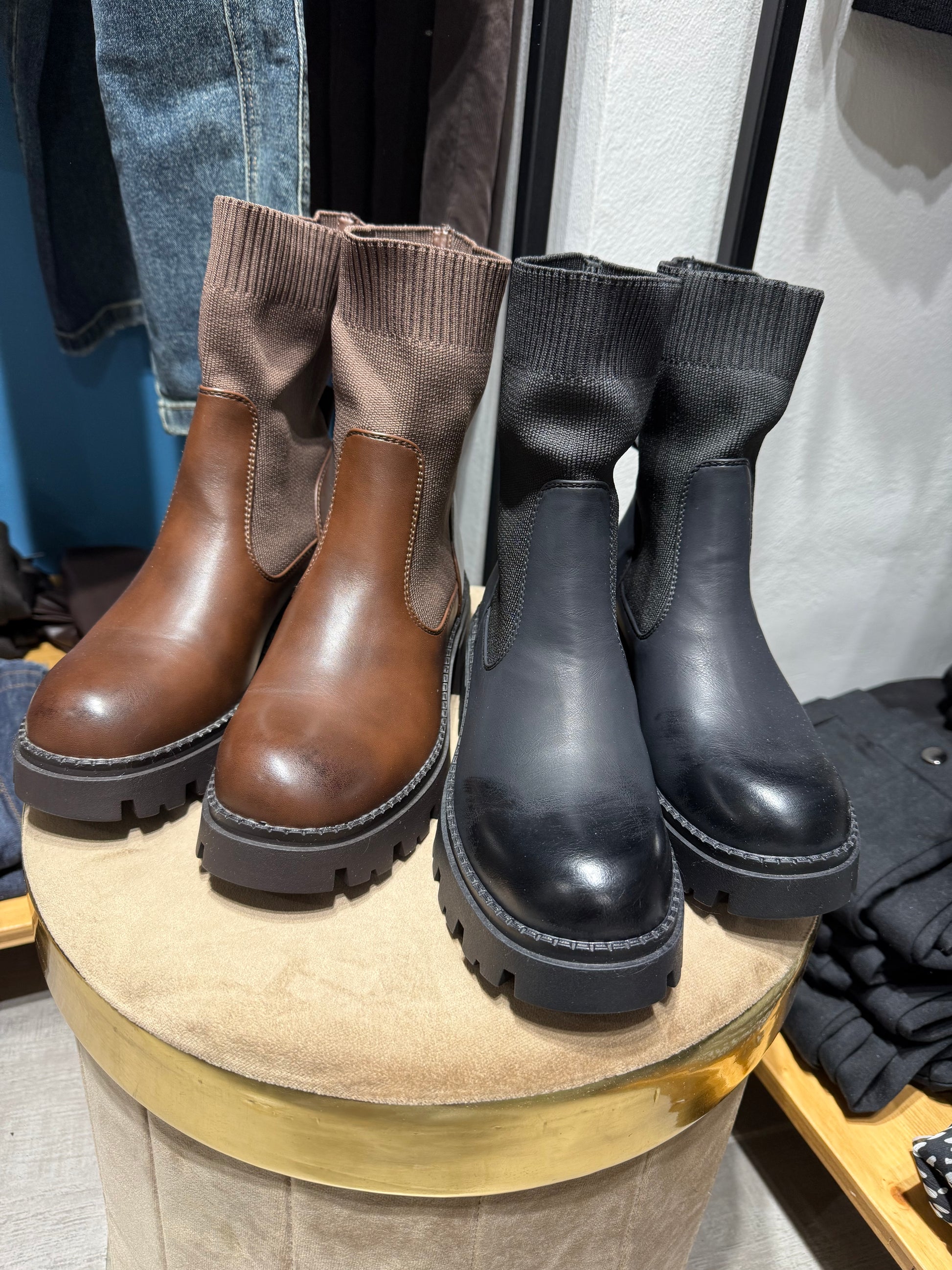 Stivaletti con elastico in maglia elasticizzata e plateau.Disponibili in marrone e nero.